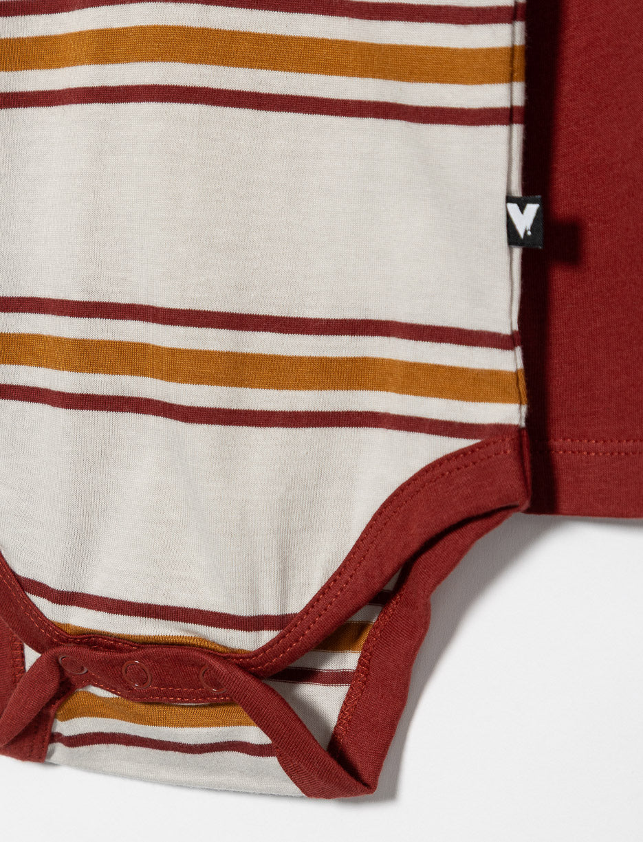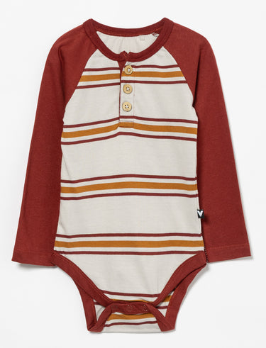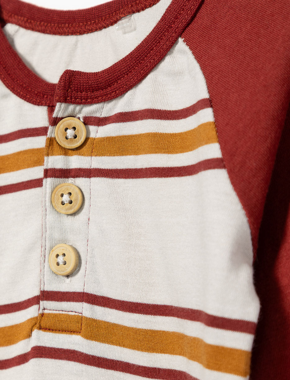 Choose this long-sleeve bodysuit for a look that’s both practical and charming. The buttoned neckline makes dressing easier, while the fall-inspired stripes add a playful touch to your baby’s wardrobe.