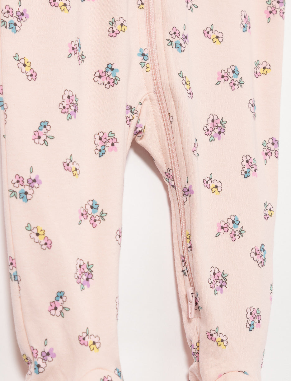 Comfort meets cuteness in this pajama! Made from soft, breathable fabric, it'll keep your little one cozy all night. The zipper makes changes effortless, while the built-in footies add extra warmth. A charming floral print makes it even sweeter!