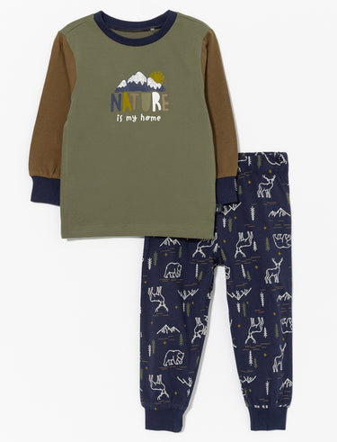 This 2-piece organic cotton pj set wraps your baby in softness for peaceful nights. With contrast sleeves and an elastic waist, it offers comfort and freedom of movement all night long.