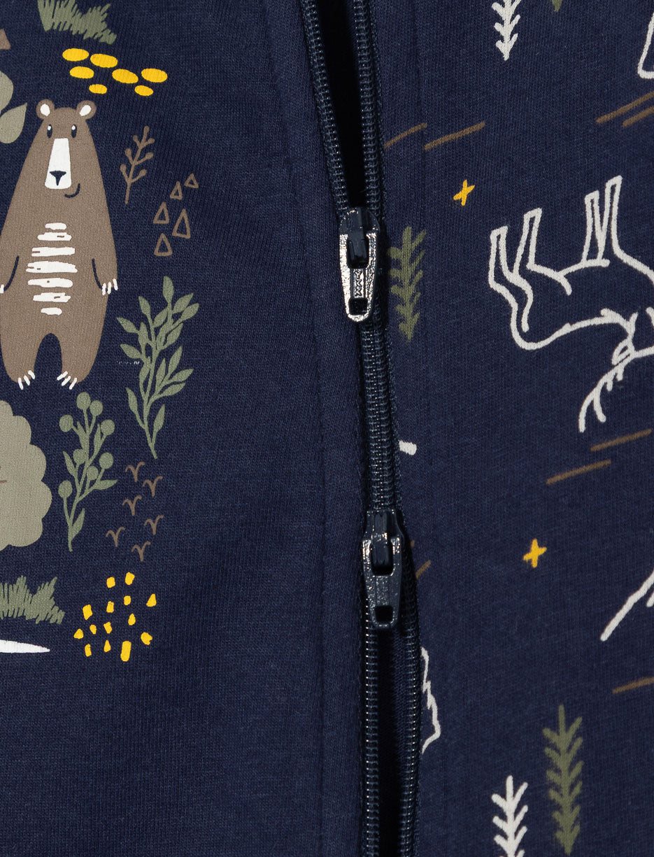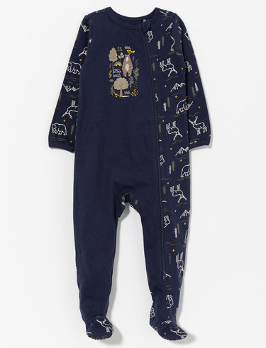 This organic cotton onesie pj keeps your baby warm and cozy all night long. With its two-way zipper and half-printed, half-solid design, it’s as practical as it is adorable for sleep and snuggles.