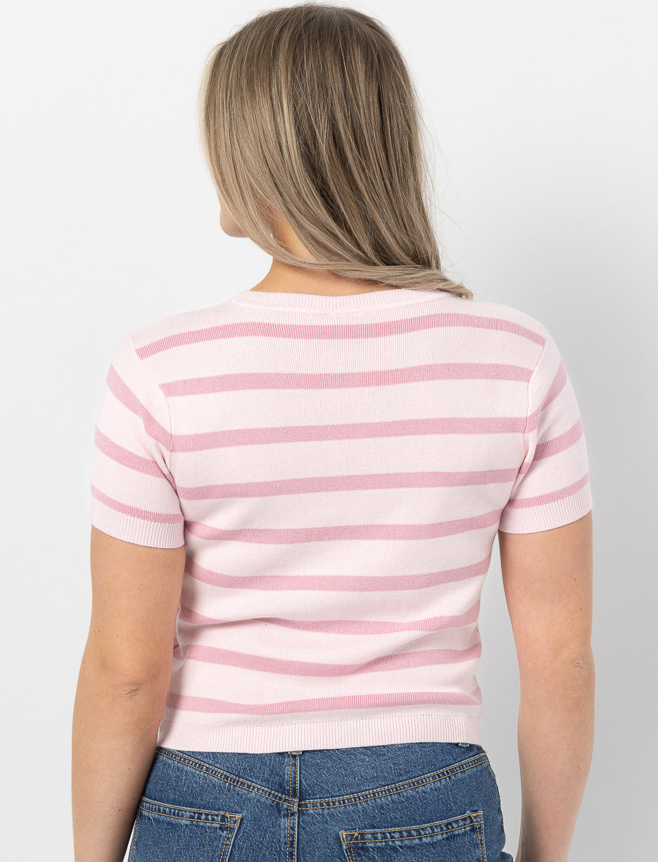This ribbed t-shirt brings a fresh take on casual elegance with its cropped, fitted cut. Perfect for a modern and effortless look, it pairs beautifully with high-waisted jeans. A timeless essential for any season!