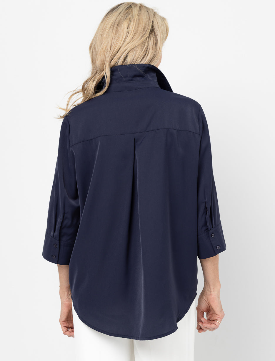 3/4-sleeve Roll-tab Blouse