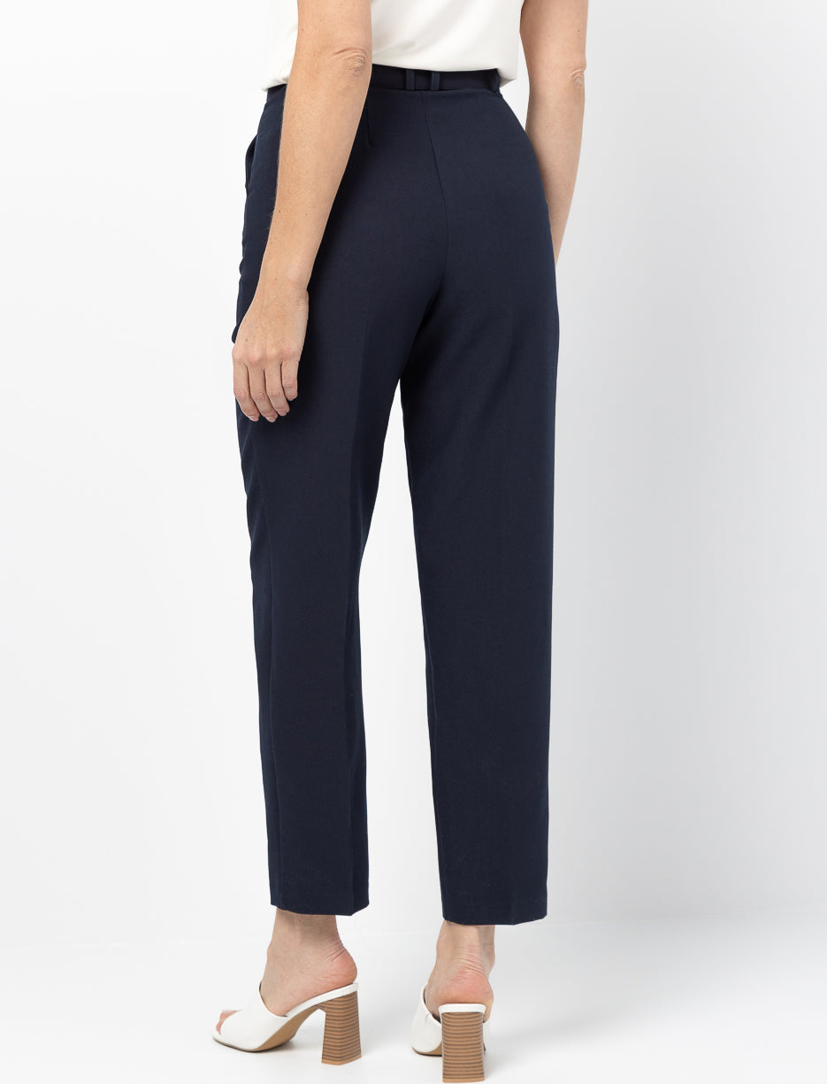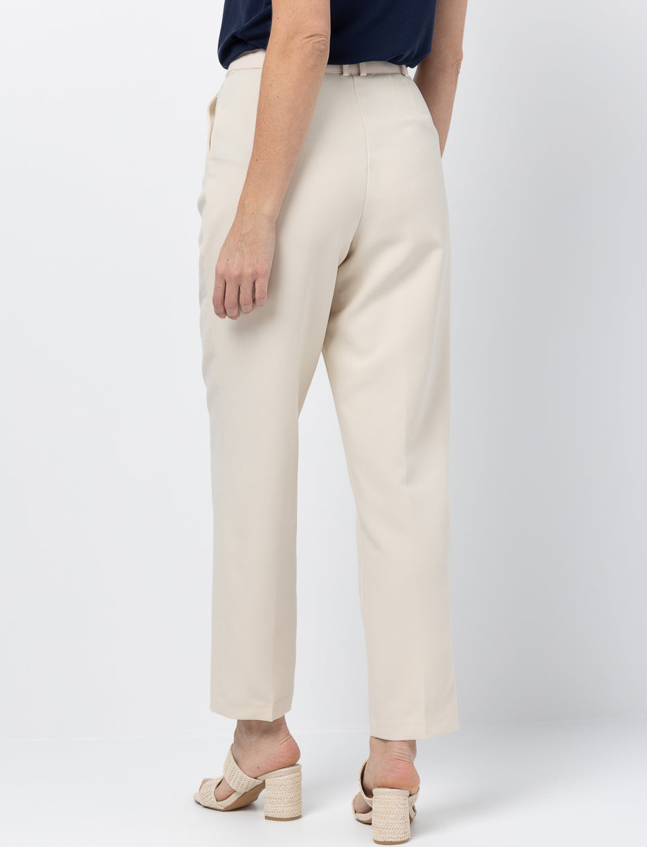 These regular-waist pants feature a polished fit with slim legs and subtle front pleats. A versatile piece that adds a refined touch to your everyday style.