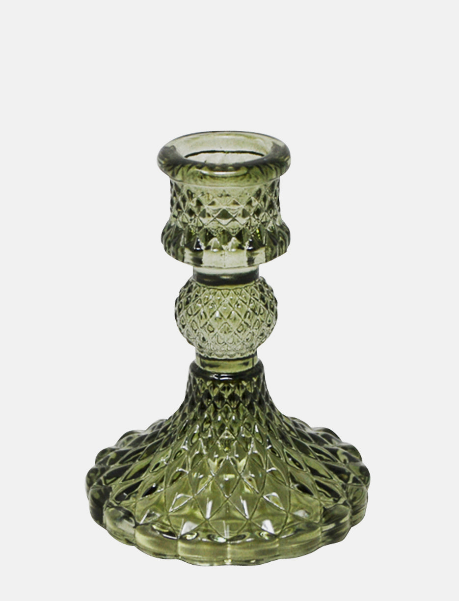 A clear glass candle holder with a timeless style. It brings a bright and elegant touch to your table or home décor.