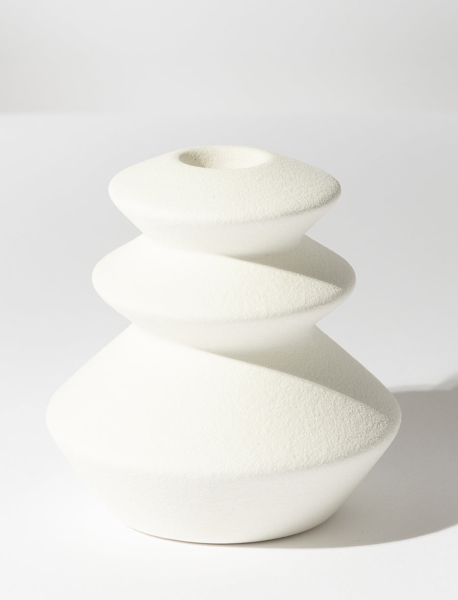 This tiered ceramic candle holder combines modern design with a soft matte finish. Perfect for a sleek, contemporary home décor. Size: 10.5 x 10.5 x 10.3 cm.