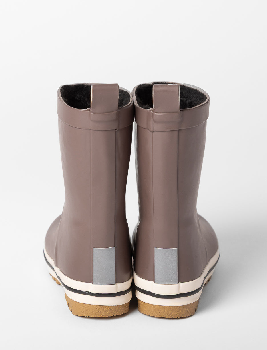 These lined rain boots keep his feet warm when the sky turns moody! The neutral shade and contrast stripe give them a modern look, perfect for little rainy-day adventures.