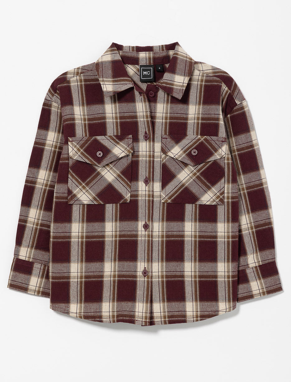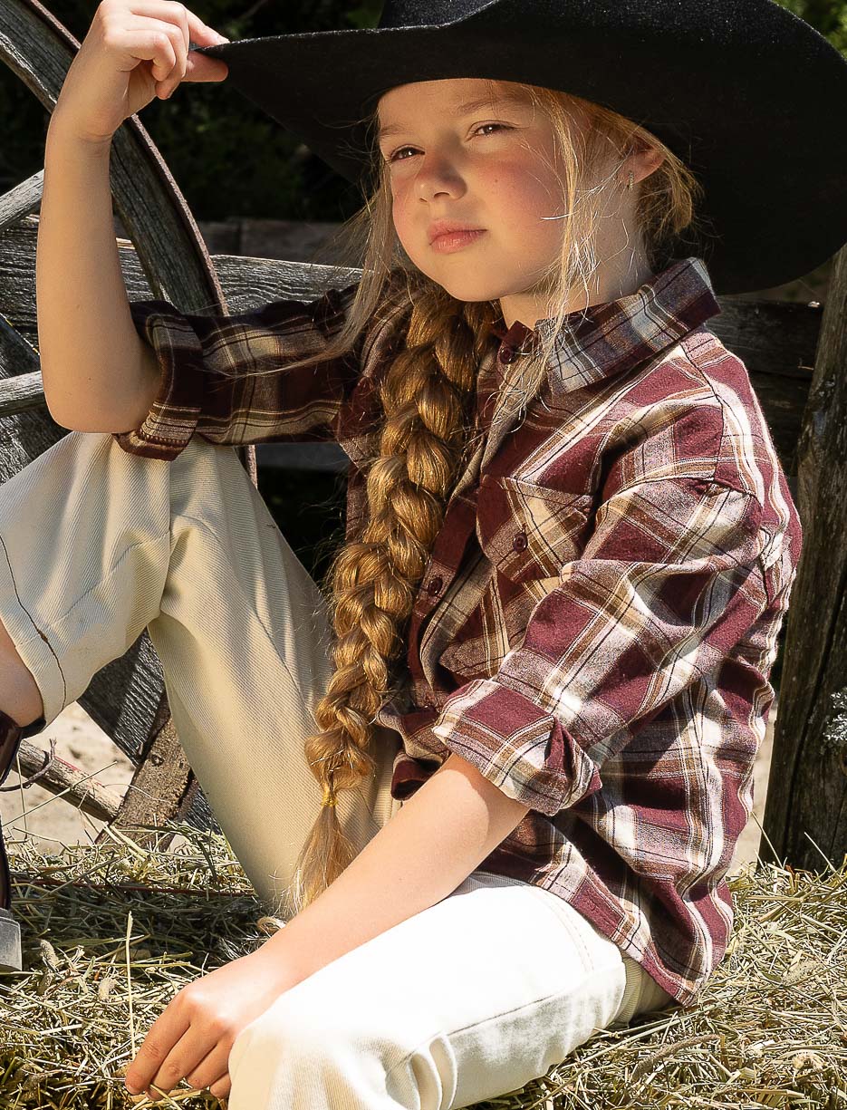 Plaid Button-up Blouse with Collar - Little Girl