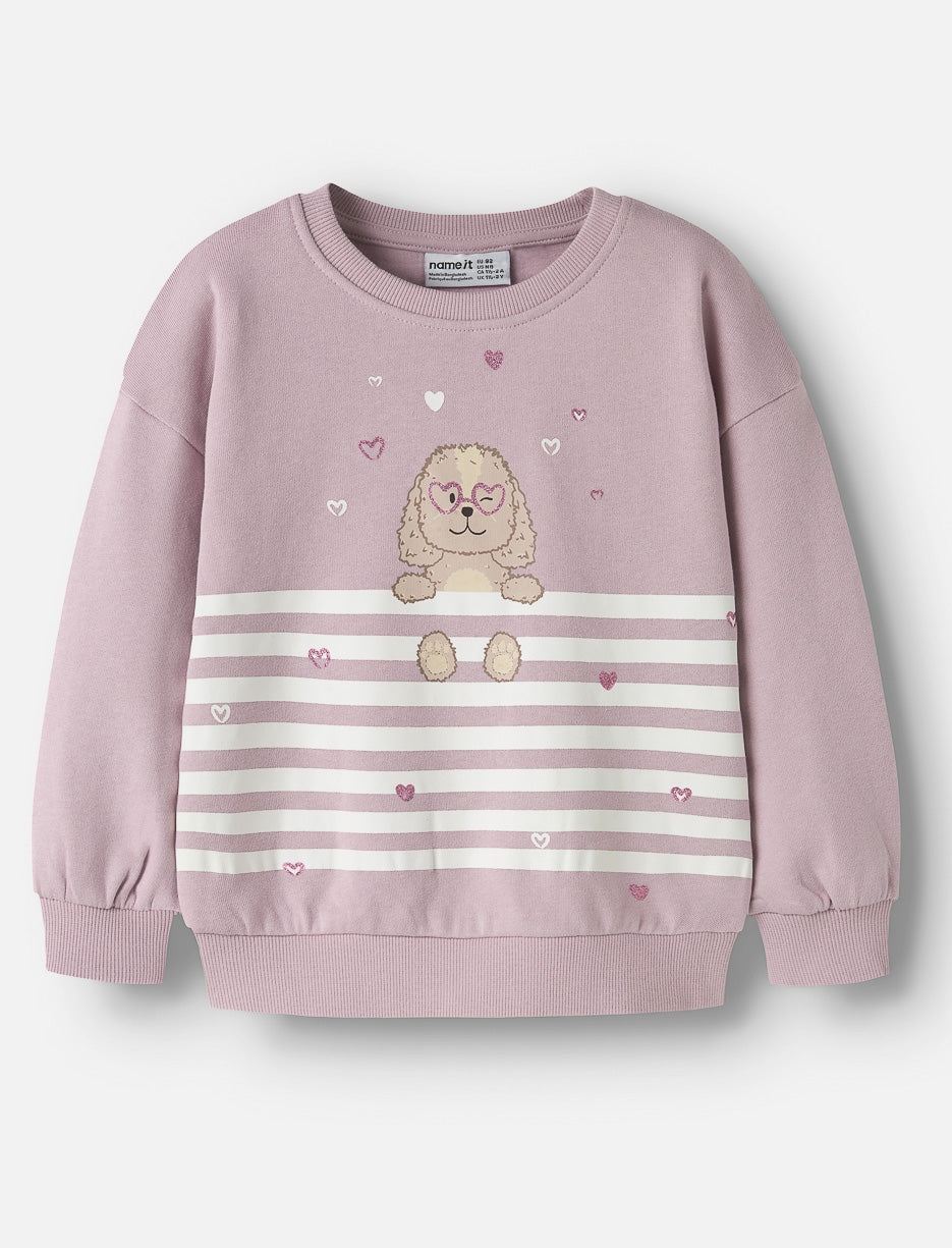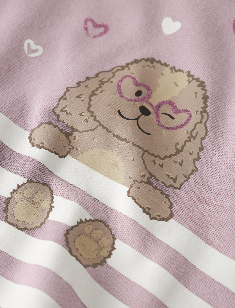 This crewneck sweatshirt keeps your little one cozy with its soft cotton fabric. The small dog print adds a sweet, playful touch, while the relaxed fit allows easy movement throughout the day.
