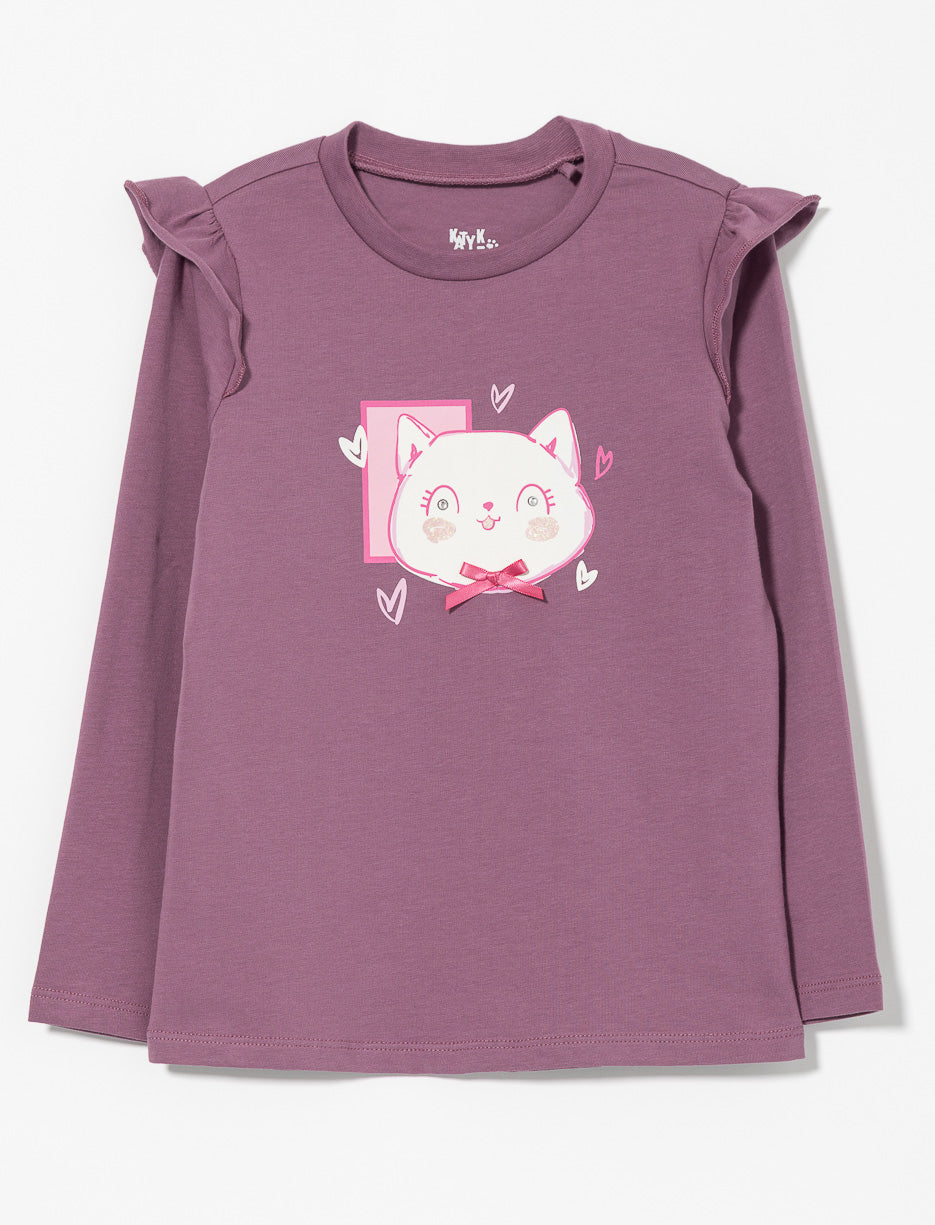 Add a sweet touch to her everyday outfits with this long sleeve t-shirt featuring delicate ruffles. Perfect for keeping her comfy and stylish all day.