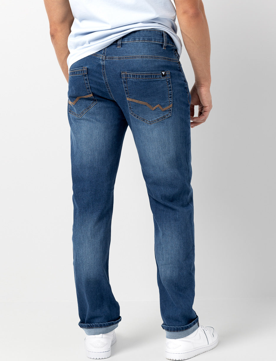 Classic straight-leg jeans for men, combining comfort and uncompromising style. With a timeless cut that perfectly flatters the figure, this essential piece is easy to wear from the office to the weekend. The quality fabric offers optimal freedom of movement, even during long days. Perfect for creating a variety of looks, from casual to semi-formal. A must-have for the modern man's wardrobe.