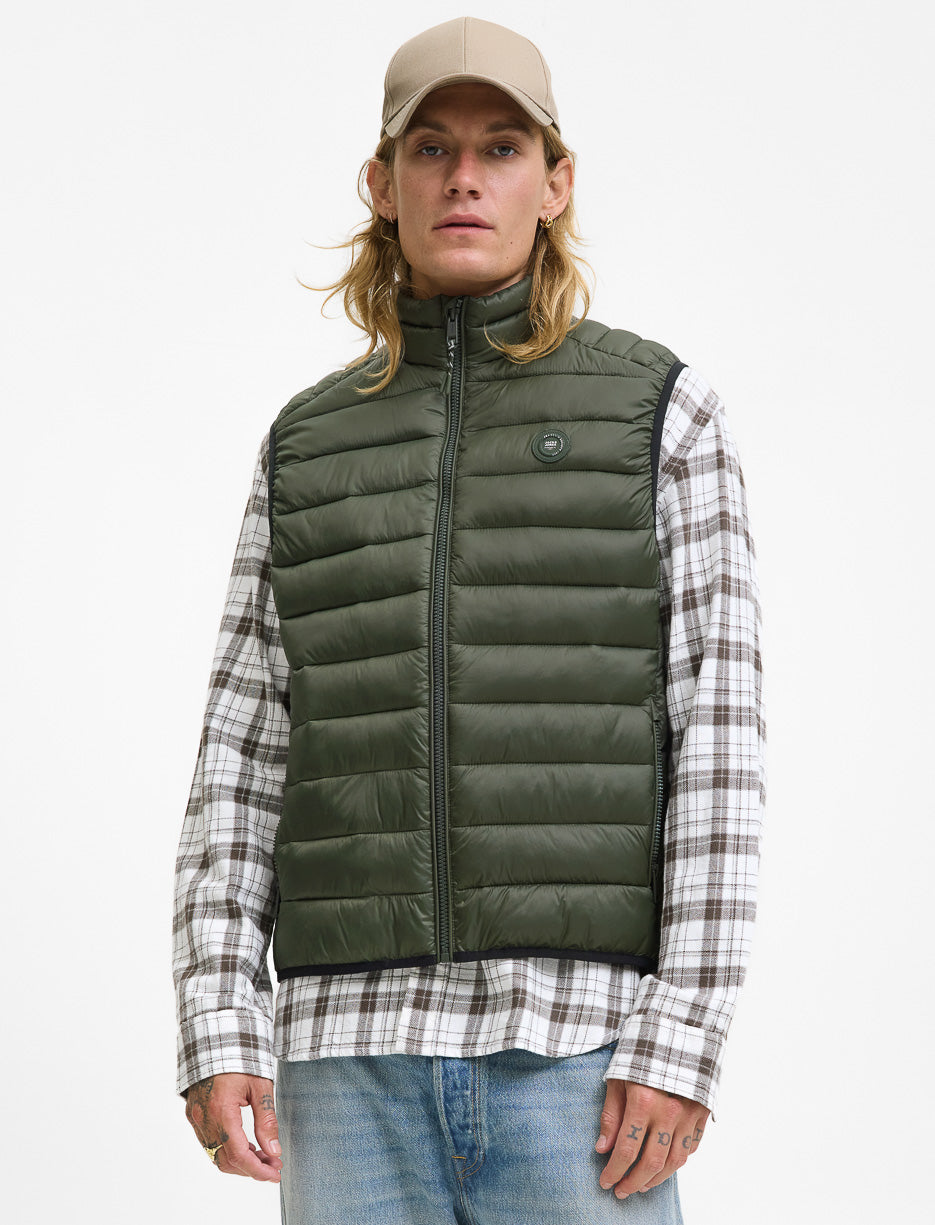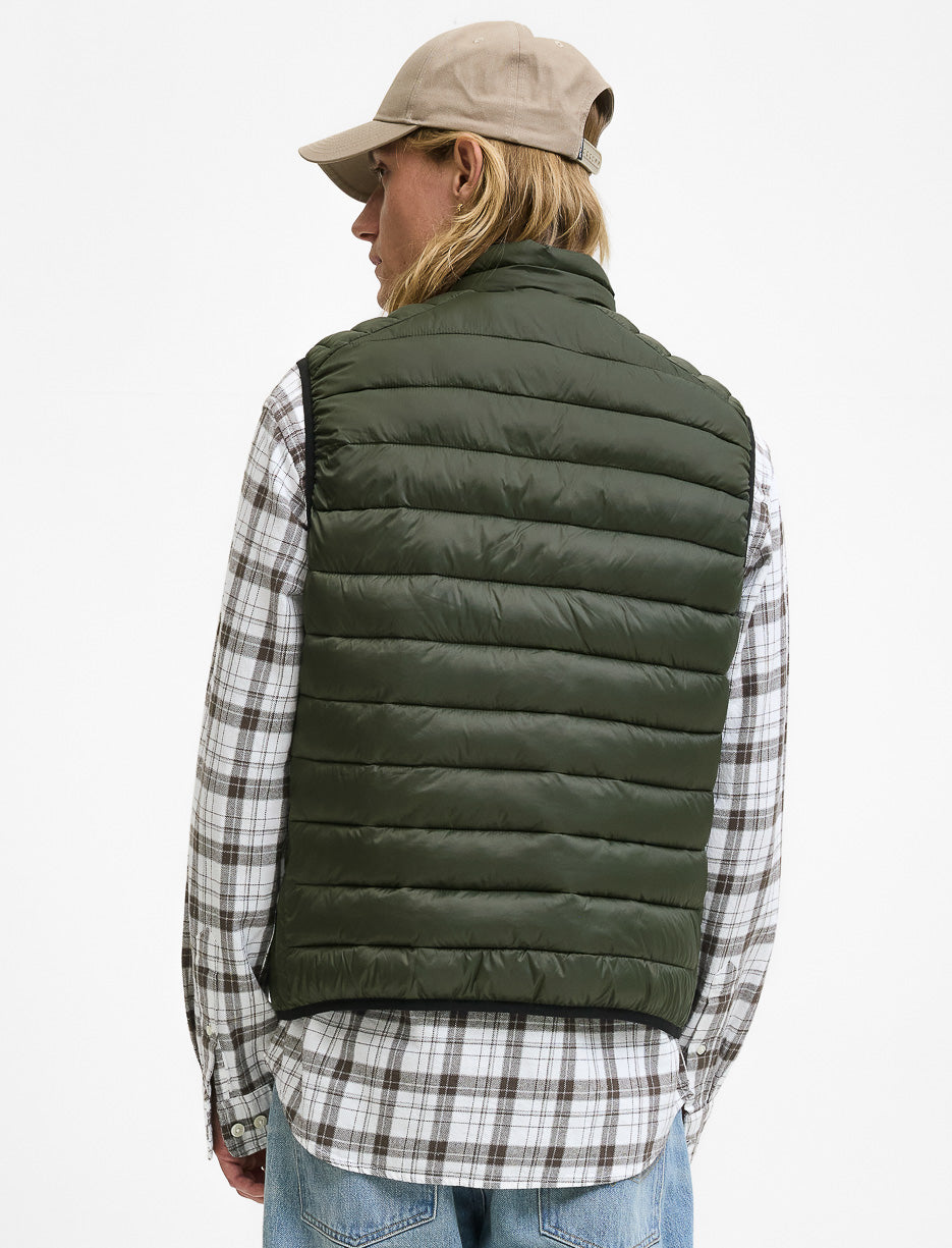 This quilted sleeveless vest delivers lightweight warmth with a stand collar for added protection. Zip pockets provide practical storage, making it a versatile layer for everyday wear.