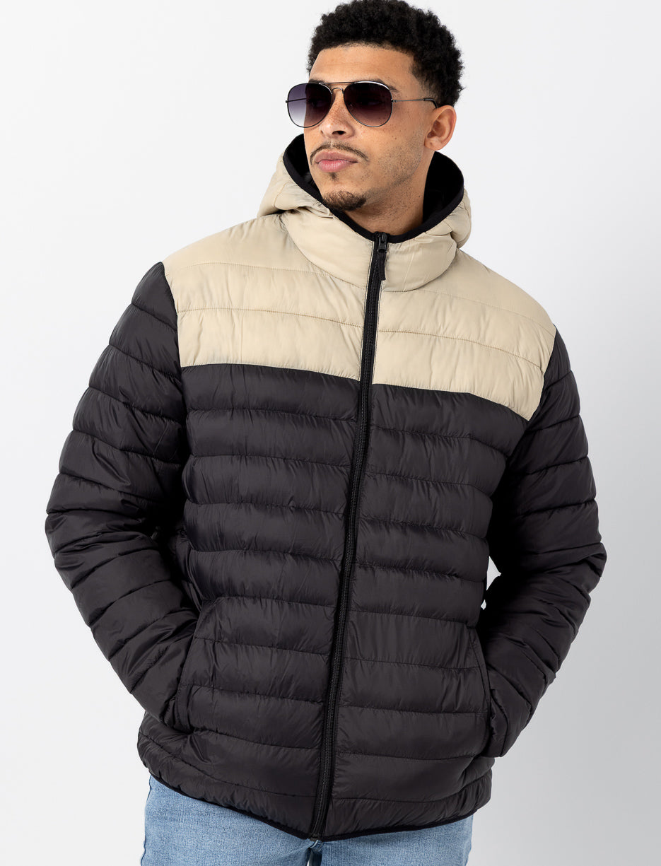 Discover our men's mid-season quilted coat, perfect for transitioning between seasons. Its two-tone design adds a touch of modern, versatile style that complements any look. The quilting provides lightweight insulation without adding bulk, while the tailored fit ensures comfort and freedom of movement. Ideal for cooler days, this coat combines elegance and practicality to confidently accompany you through everyday life.