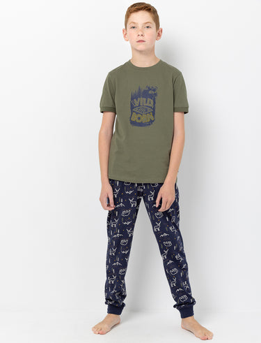 This 2-piece organic cotton pj set blends comfort and style for restful nights. With its short-sleeve tee and elastic waist pants, it offers soft, easy movement for lounging or sleeping in total comfort.