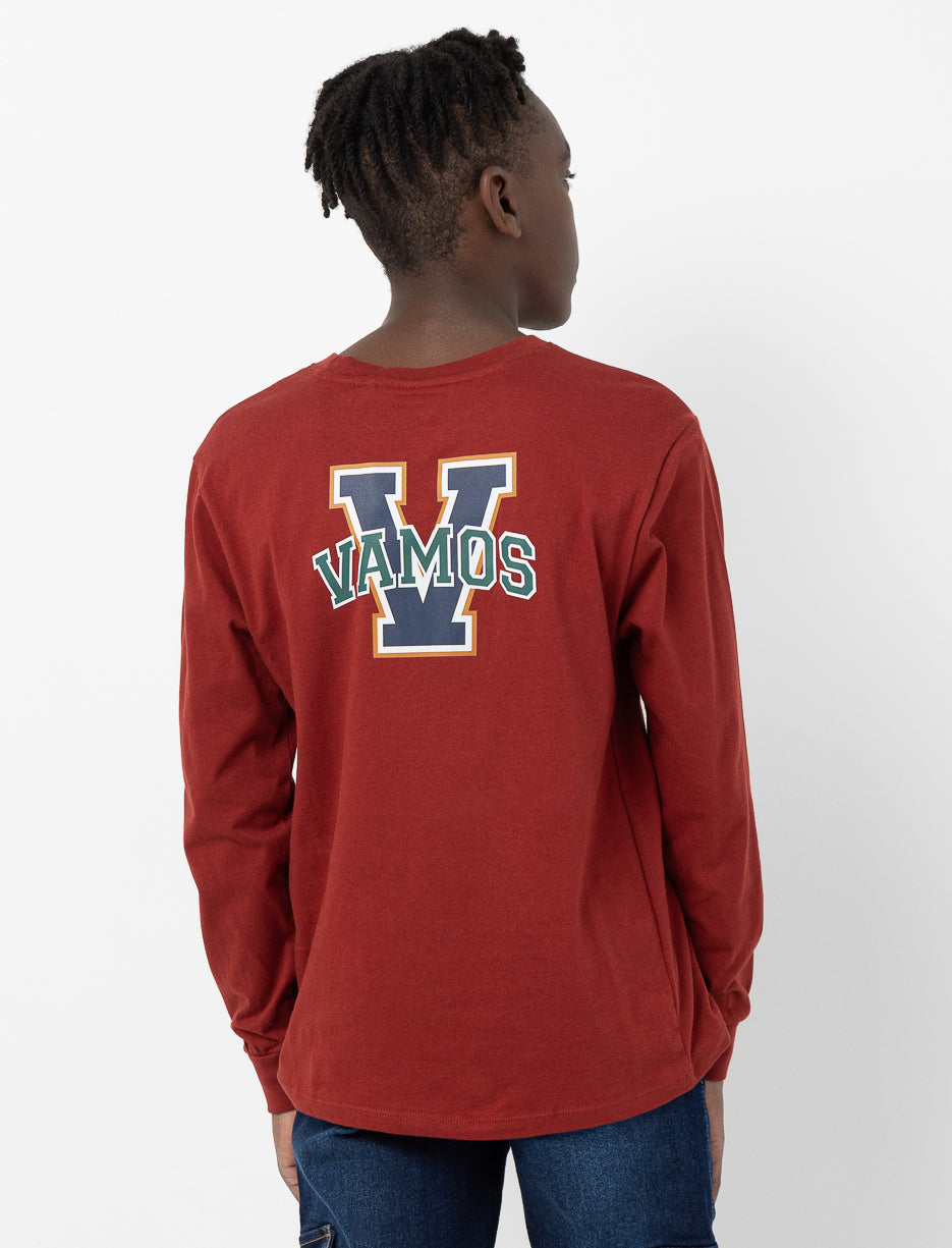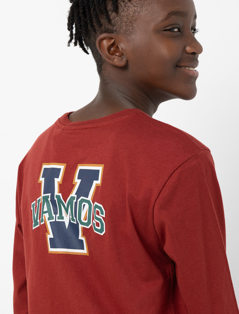 Add sporty energy to his outfit with this bold long-sleeve t-shirt featuring a large VAMOS print on the back. A simple yet standout addition to his casual closet.