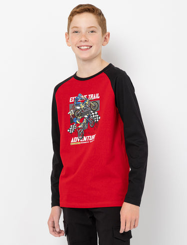 Give your child a modern and energetic look with this two-tone long sleeve t-shirt. With its comfortable fit and contrast sleeves, it’s the perfect piece for moving freely while staying stylish.