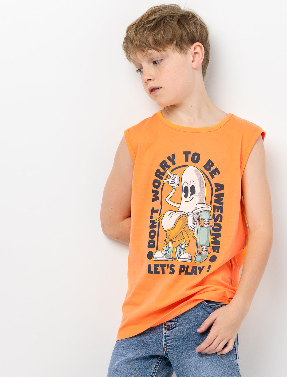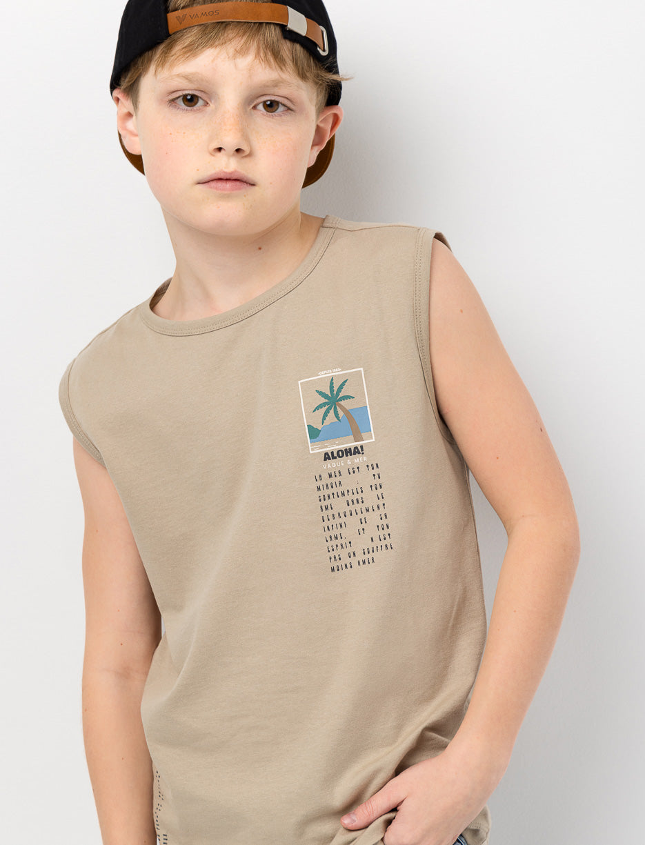 An organic cotton printed tank that brings a playful touch to your boy’s day. Light and comfortable, it follows him through playtime and active moments with ease.