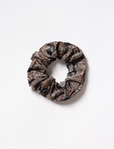 Hair scrunchie with an all-over floral print. Measuring 10 cm in diameter and 3 cm in width, it adds a feminine touch to any hairstyle.