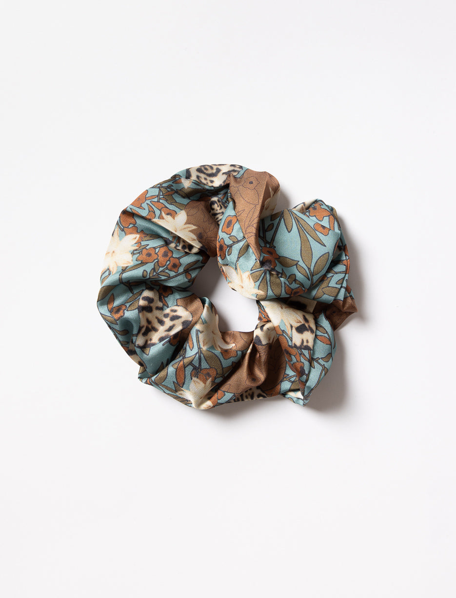 Hair scrunchie with an all-over floral print. Measuring 10 cm in diameter and 3 cm in width, it adds a feminine touch to any hairstyle.