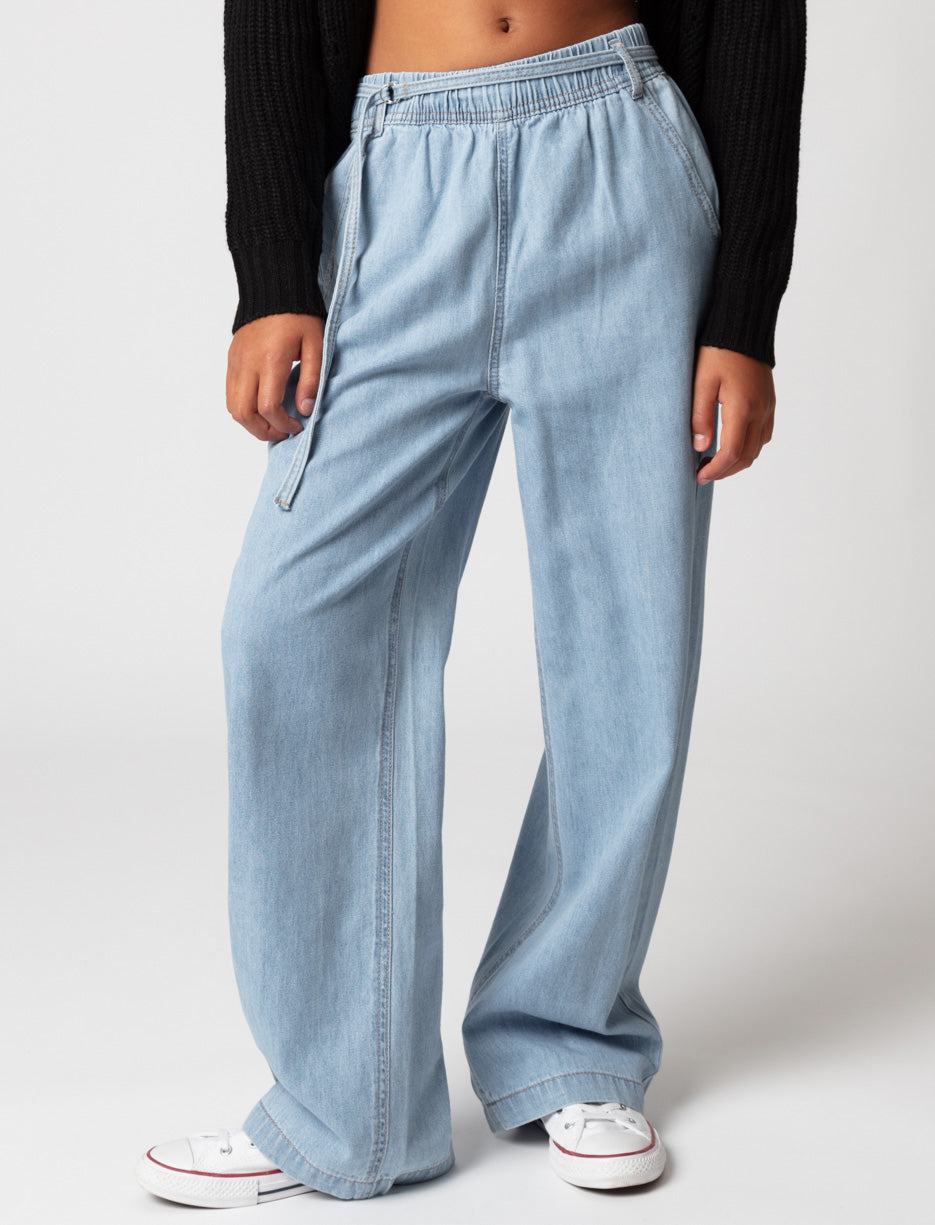 High-rise wide-leg jeans, perfect for teens looking for comfort and style. The adjustable waistband provides a secure fit while allowing freedom of movement. Ideal for creating casual or more polished looks depending on the occasion.