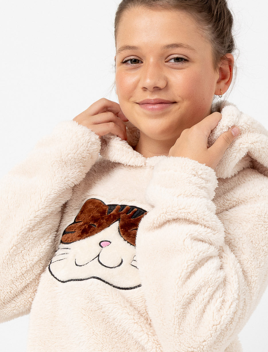 Plush Cat Print PJ Hoodie