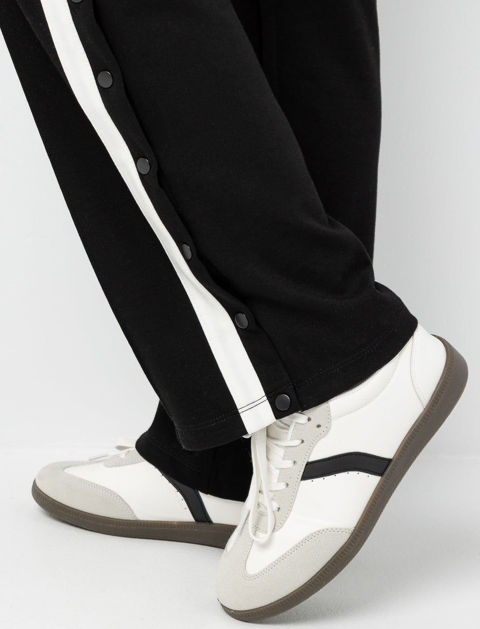 Designed for easy movement, these sporty pants with contrasting stripes will follow your girl from active mornings to relaxed afternoons. The loose fit and stretch fabric make them a perfect everyday essential.