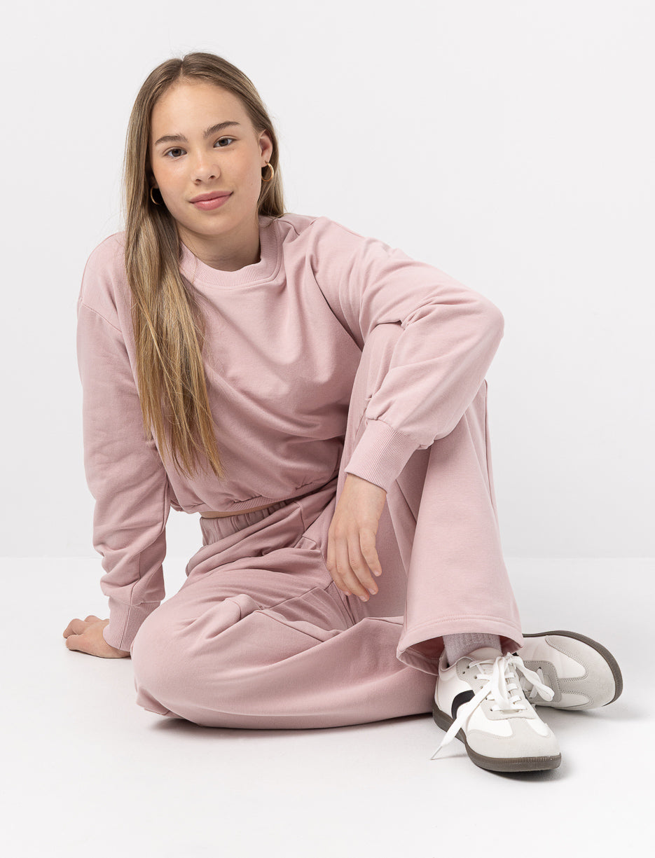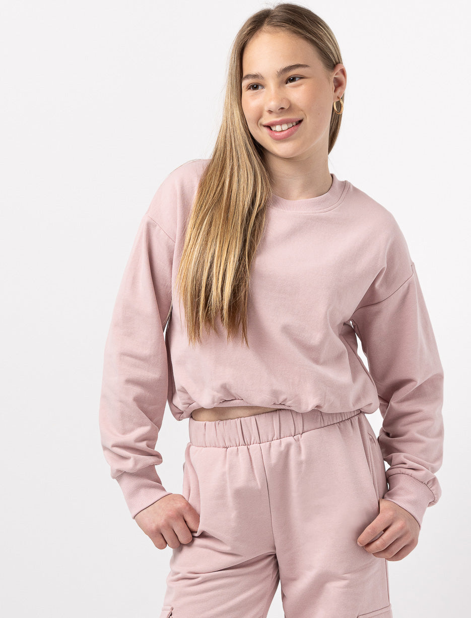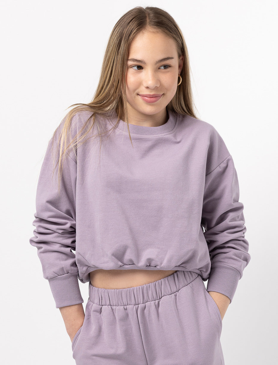 Give your teen's wardrobe a stylish twist with this cropped fleece sweatshirt. Its soft texture and clean cut make it an everyday go-to for relaxed and confident looks.