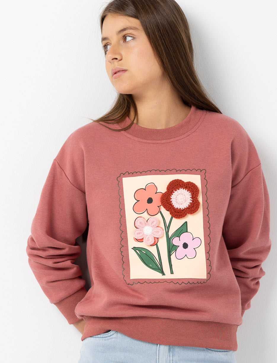 Brighten your teen’s wardrobe with this sweatshirt featuring lovely applied flowers for a fresh and charming look.
