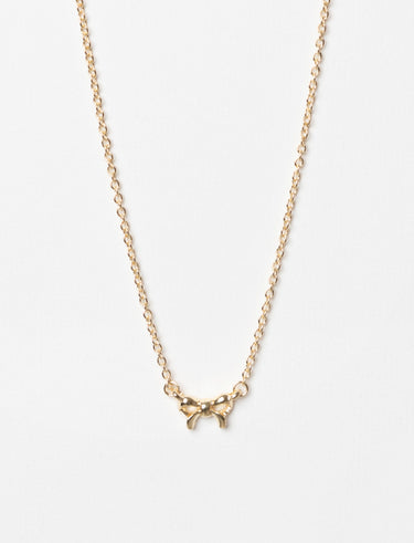 This delicate gold necklace features a charming bow pendant that exudes elegance and charm. Ideal for gifting or adding a sweet touch to your everyday look.