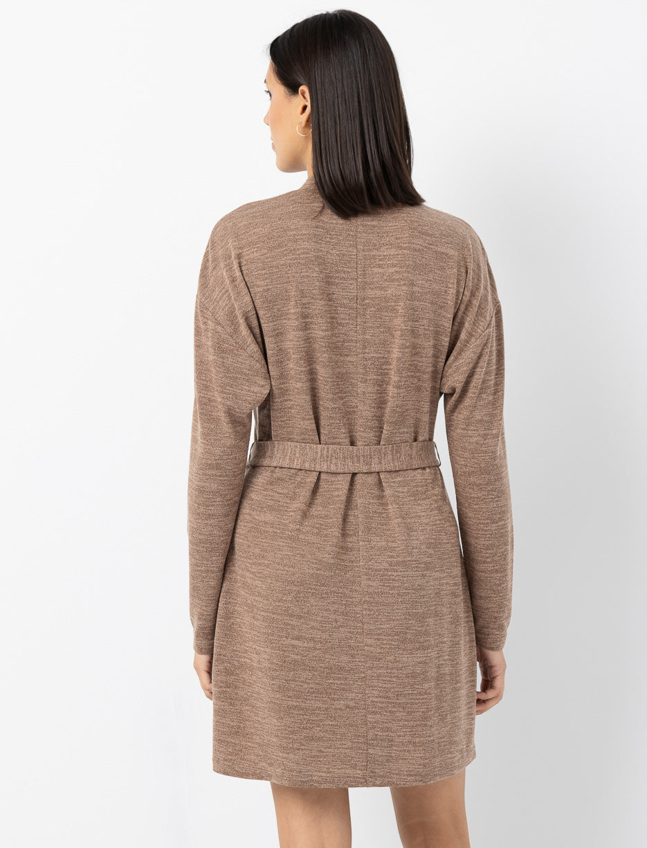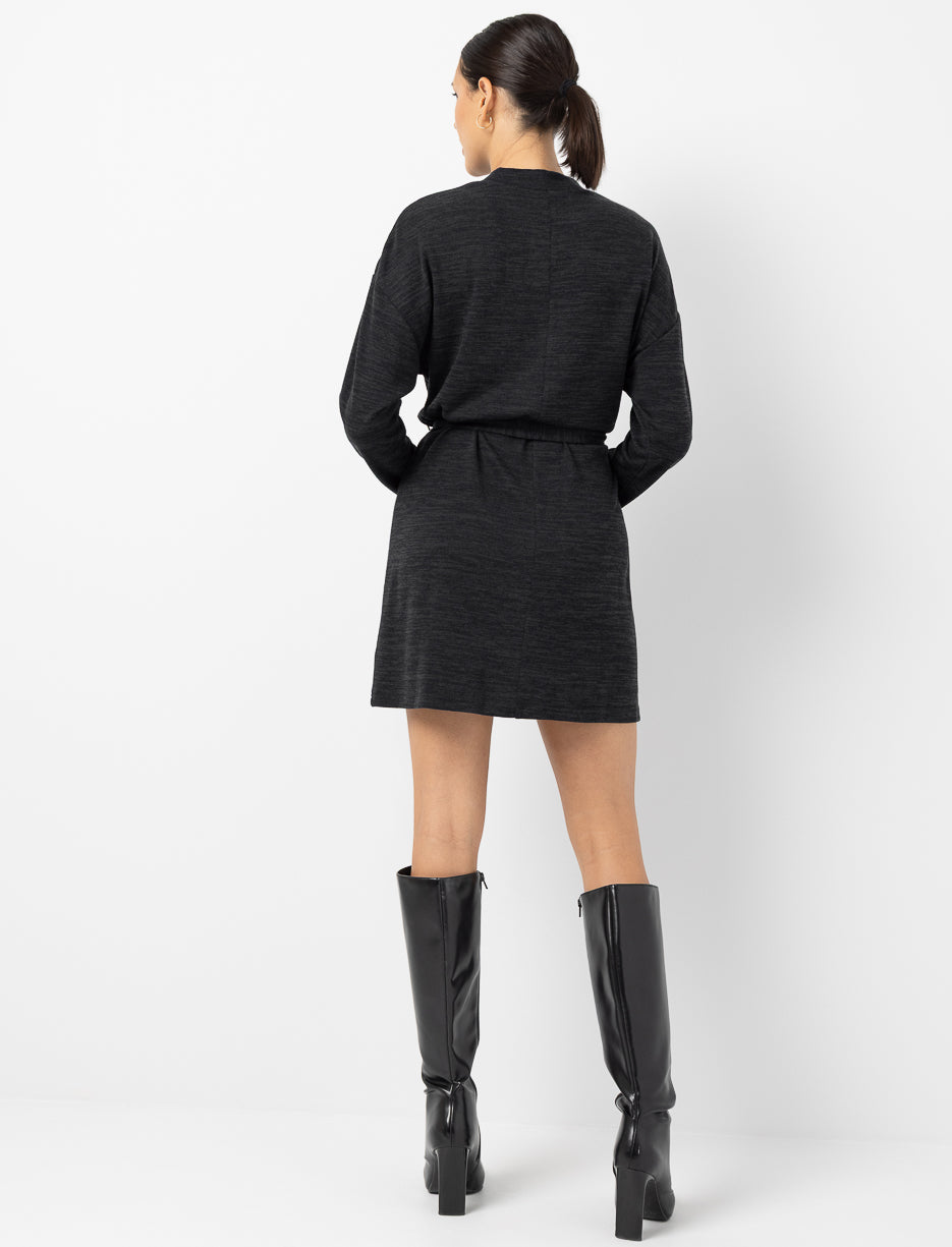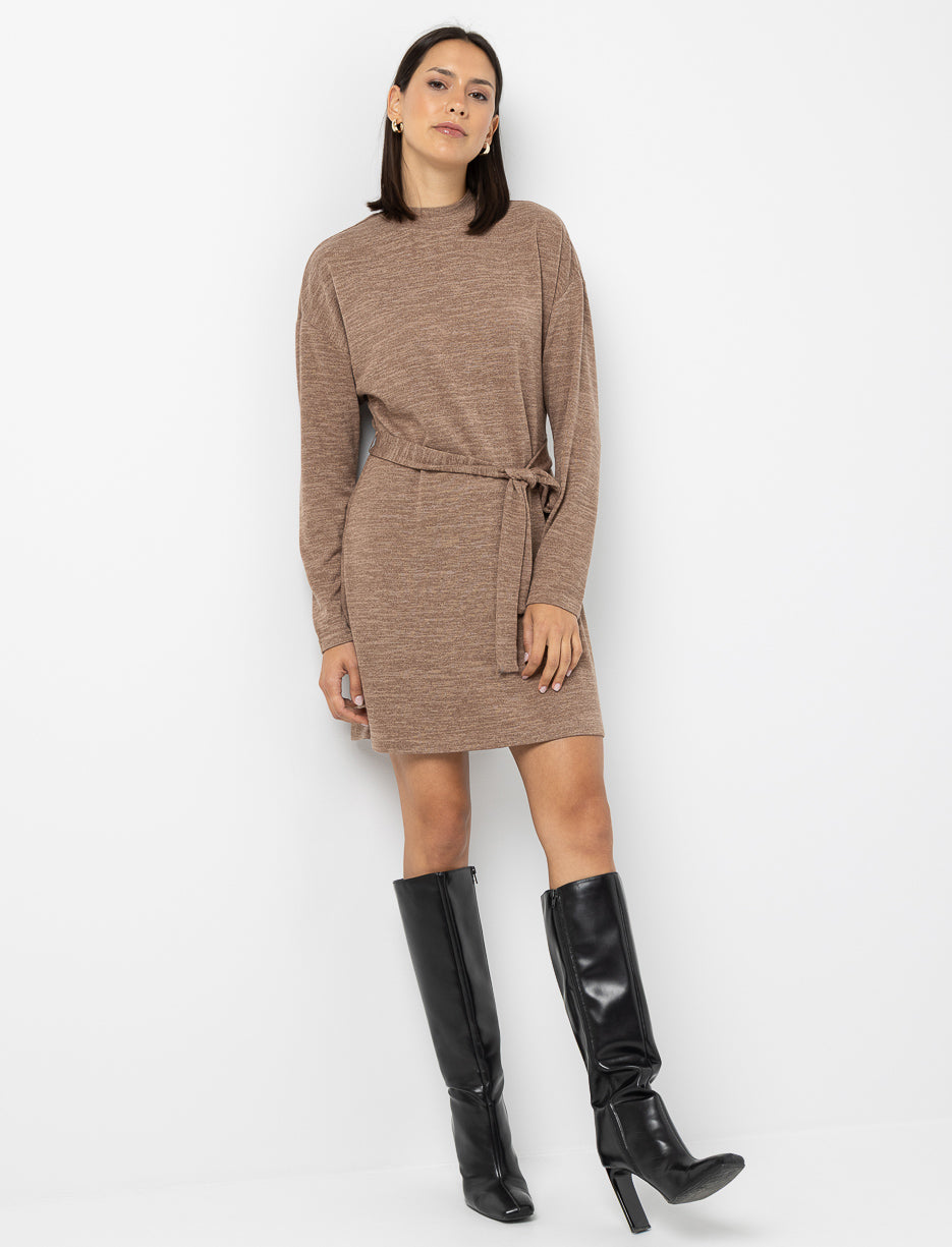 Soft and structured, this mock-neck dress flatters the silhouette with its matching belt. An easy piece to throw on for a warm and stylish look in seconds.