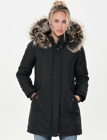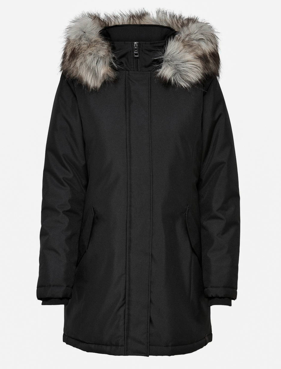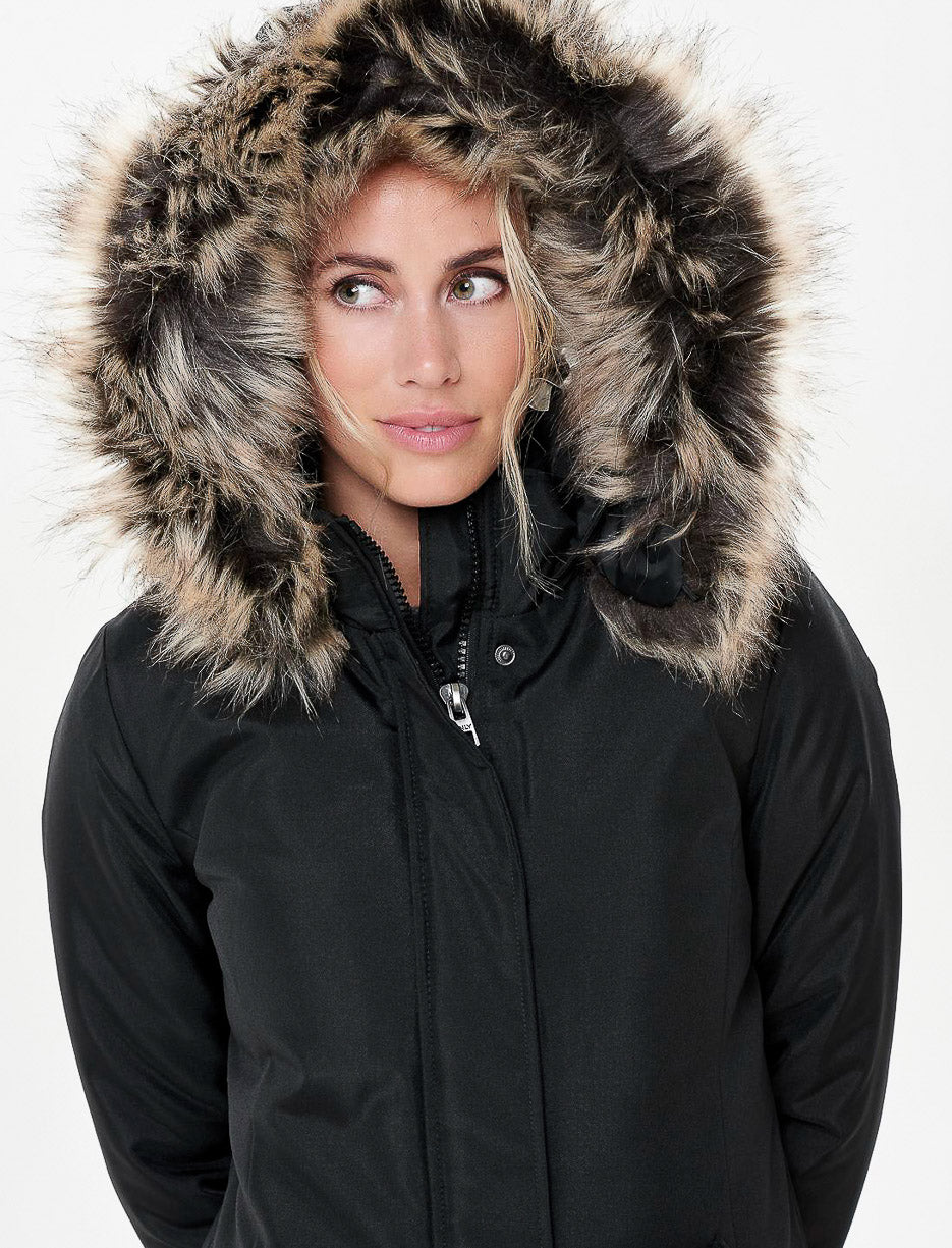 Designed for cold days, this coat offers comfort, warmth and protection. The faux fur-trimmed hood adds a cozy, stylish touch to a piece made for winter.
