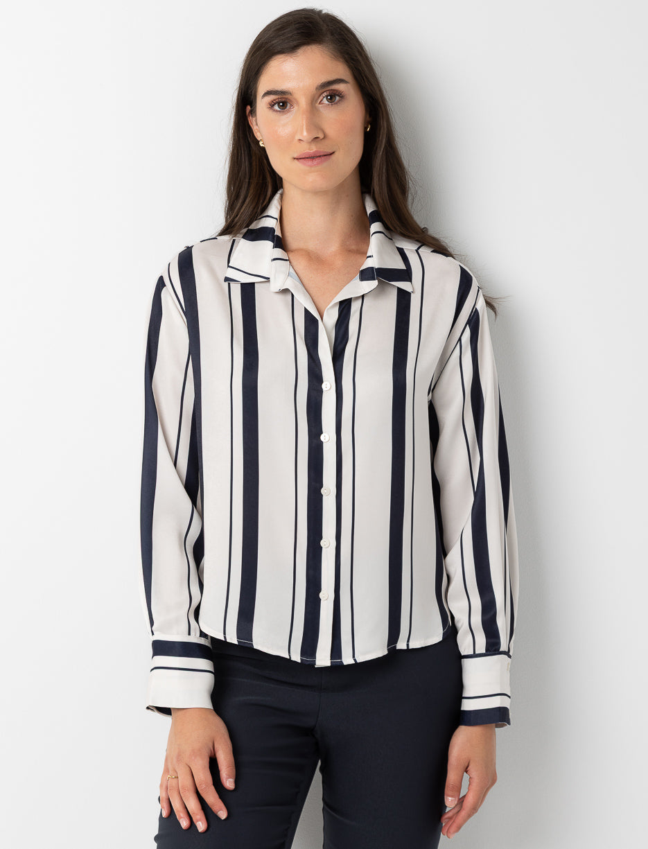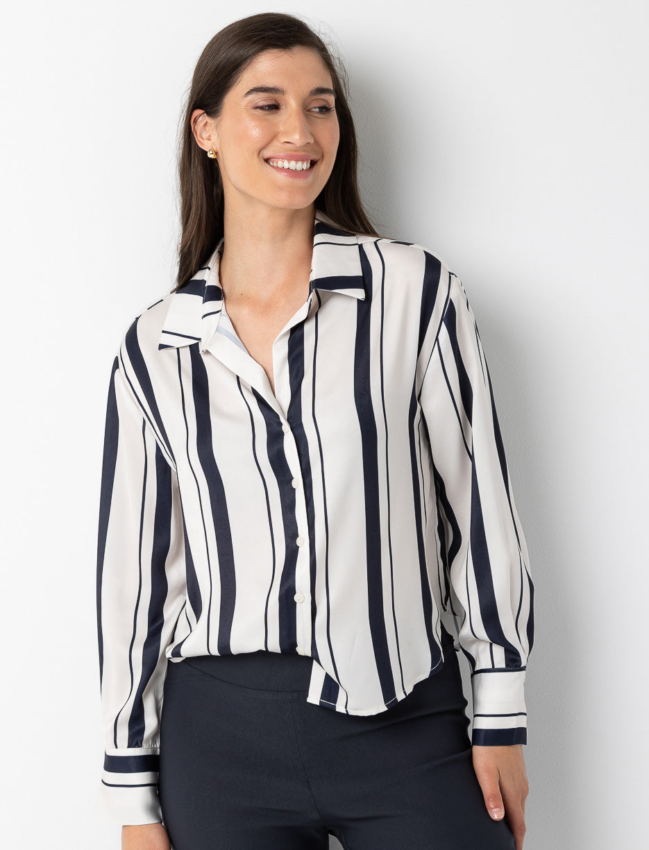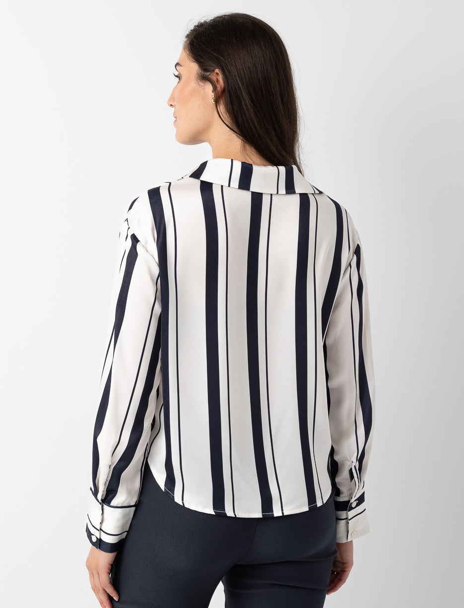 This striped satin blouse adds a chic, luminous touch to your outfits, perfect for shining at the office or in the evening.