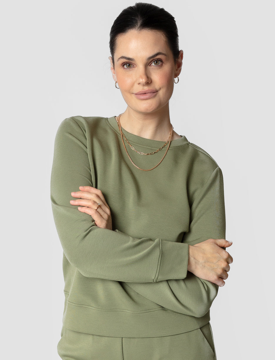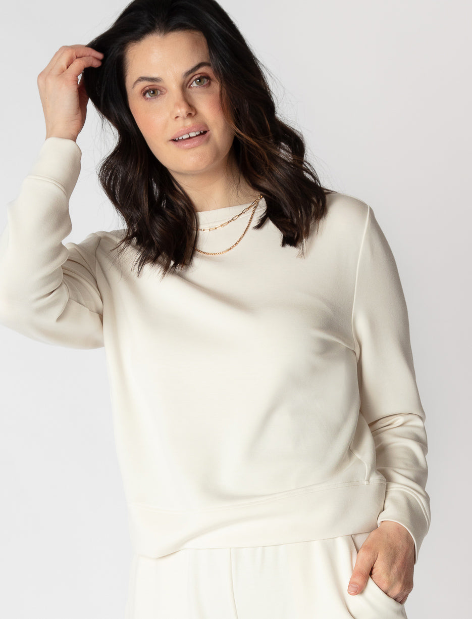 Chic in the front, surprising in the back! This sweater combines comfort and style with its minimalist cut and subtly open back. A soft and refined piece that works for both casual days and dressy evenings.