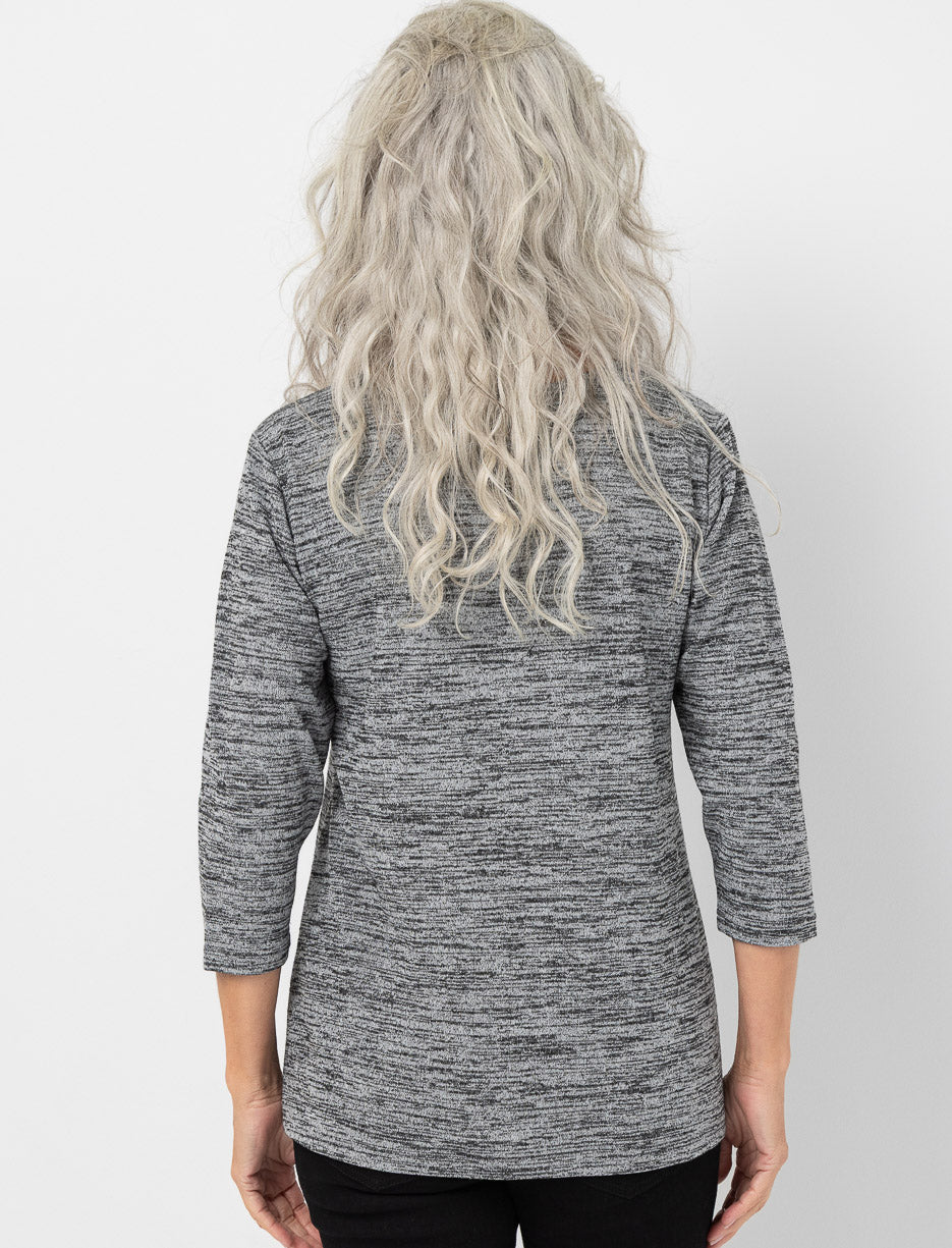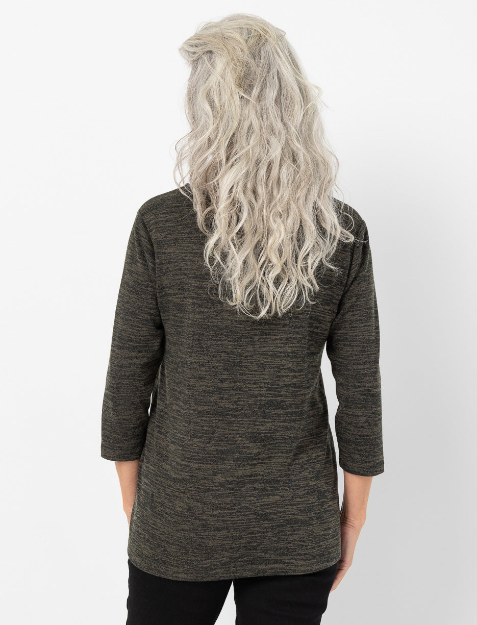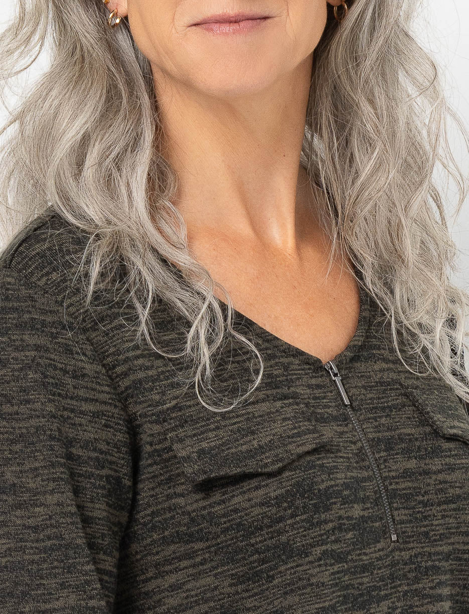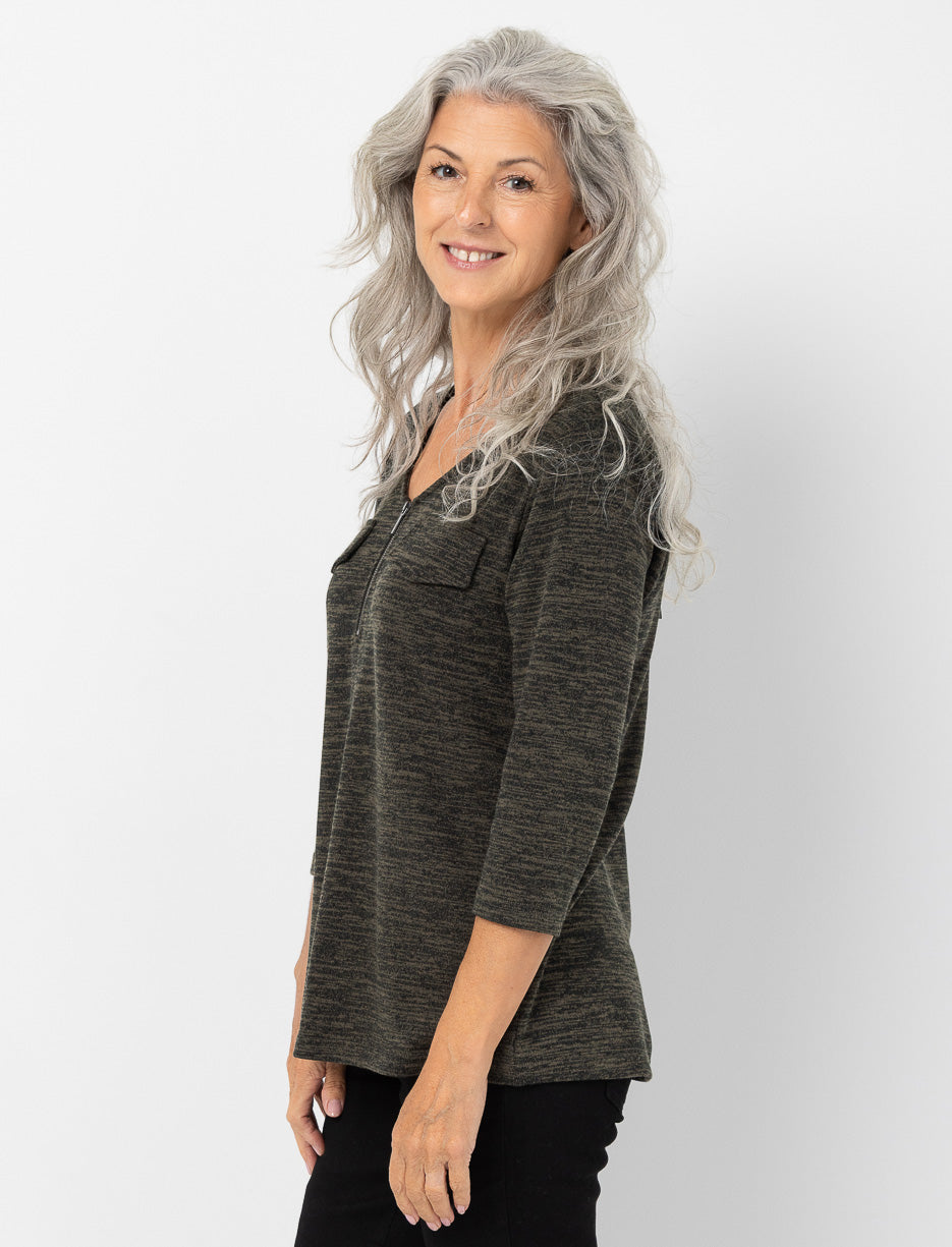 3/4-sleeve Zip V-neck Sweater