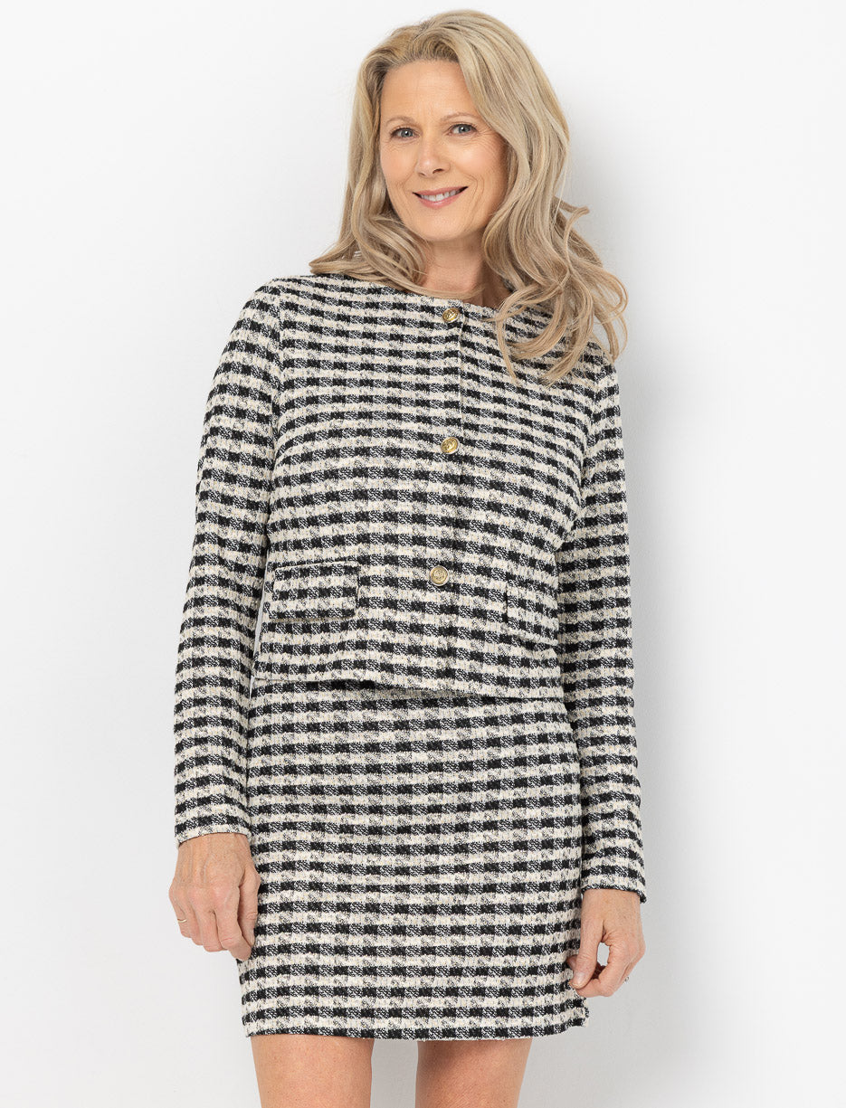 Chic and timeless, this bouclé blazer instantly elevates your look. The gold-tone buttons add a refined finishing touch.