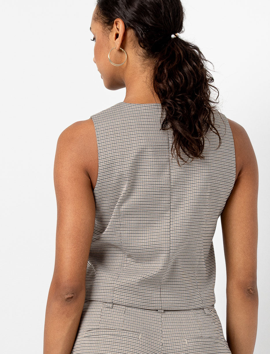 Add a sophisticated touch to your style with this sleeveless plaid blazer. Featuring a round neckline and classic buttons, it pairs effortlessly with a matching set or elevates any everyday outfit.