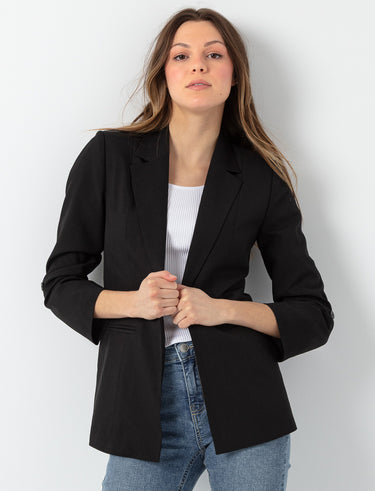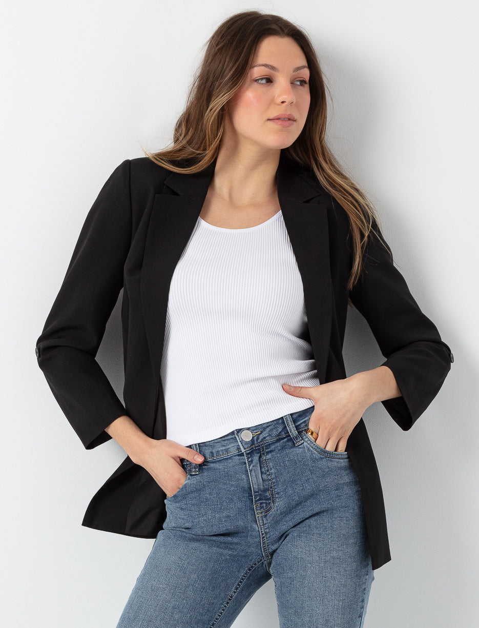 A wardrobe essential that goes with everything. This open-front blazer adds just the right amount of structure without overdoing it. Perfect for everyday layering.