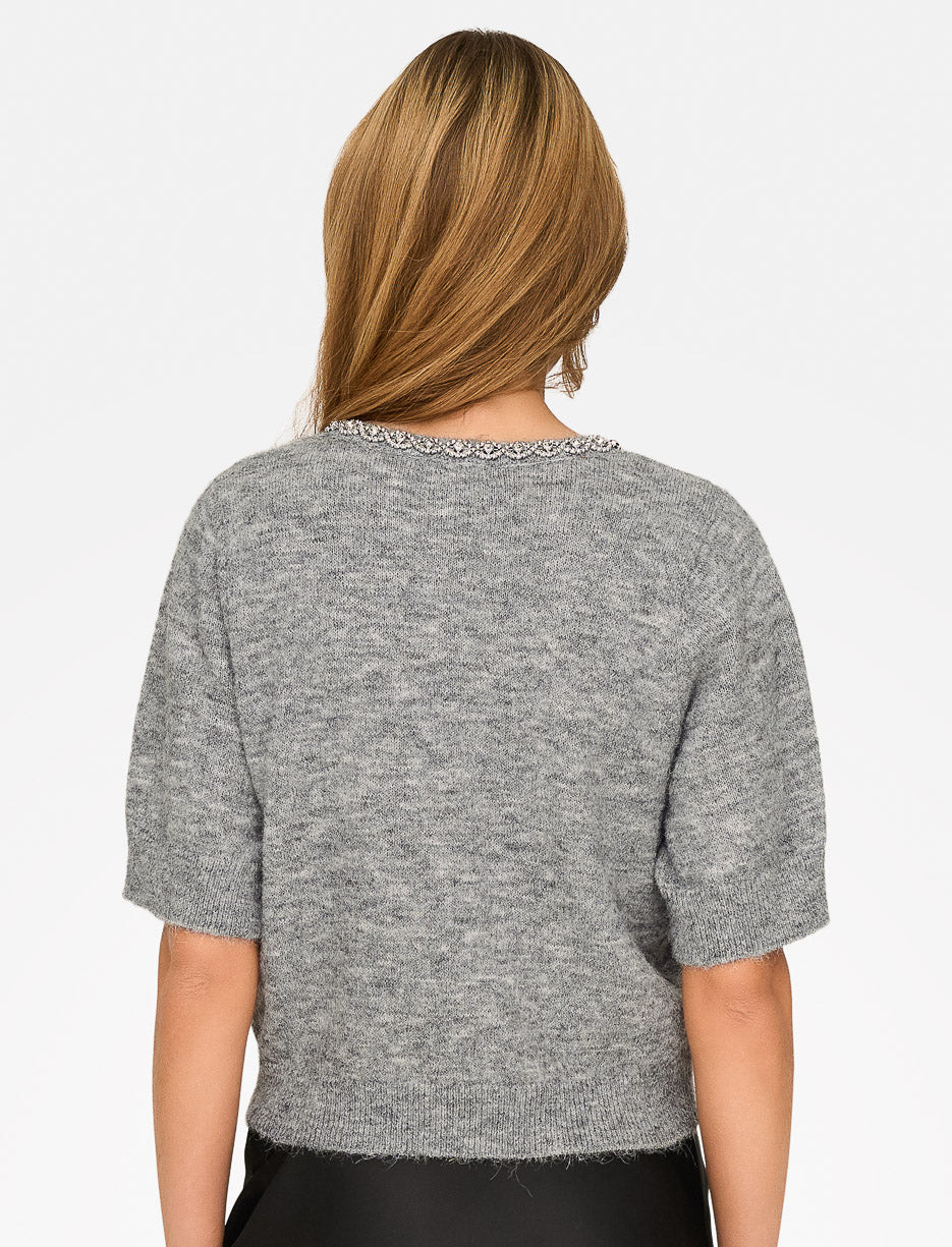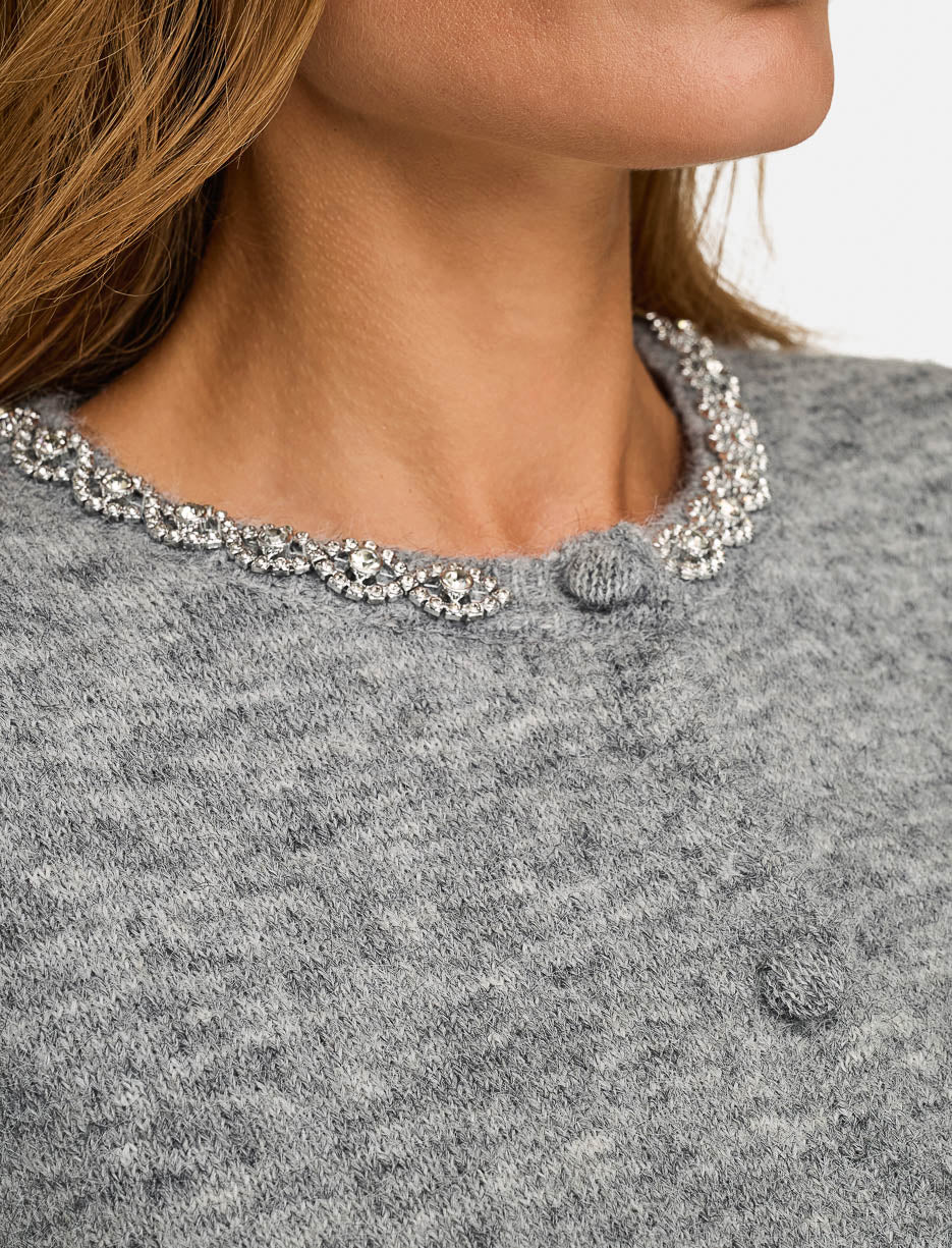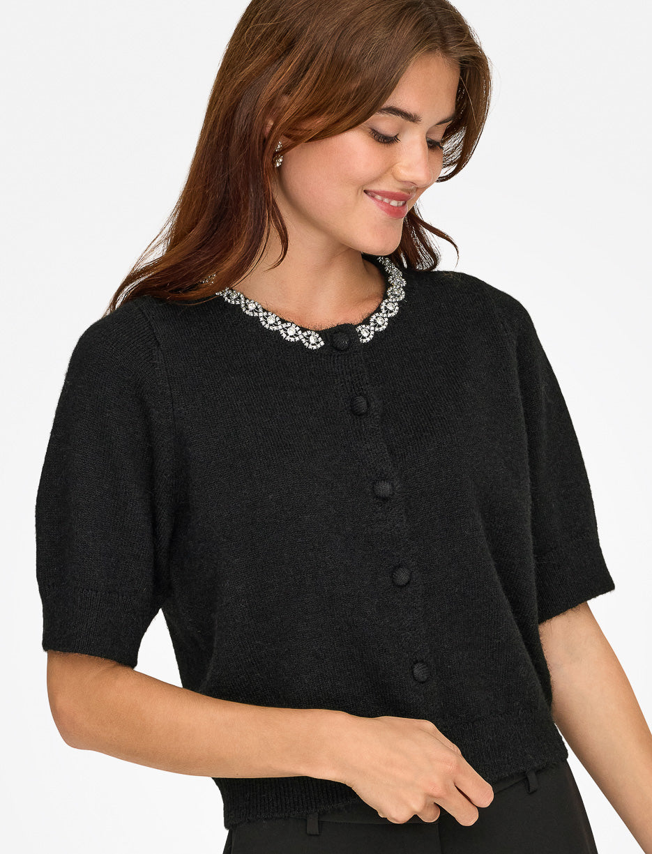 Button-Front Knit Cardigan with Rhinestones