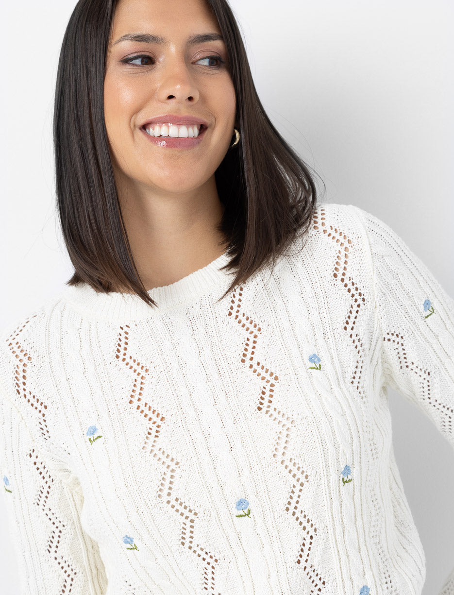 Floral Embroidered Knit Sweater