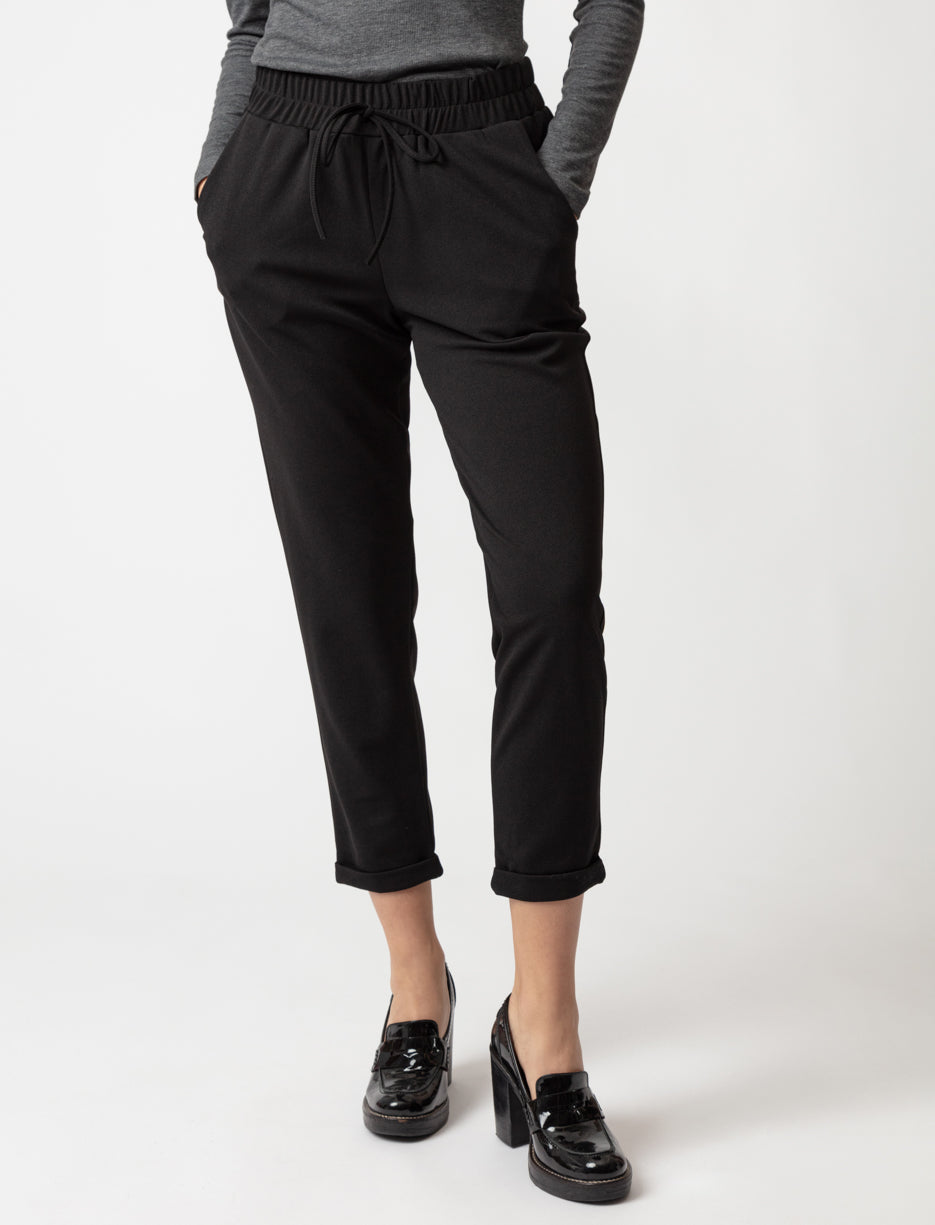 Cropped Elastic Waist Pants