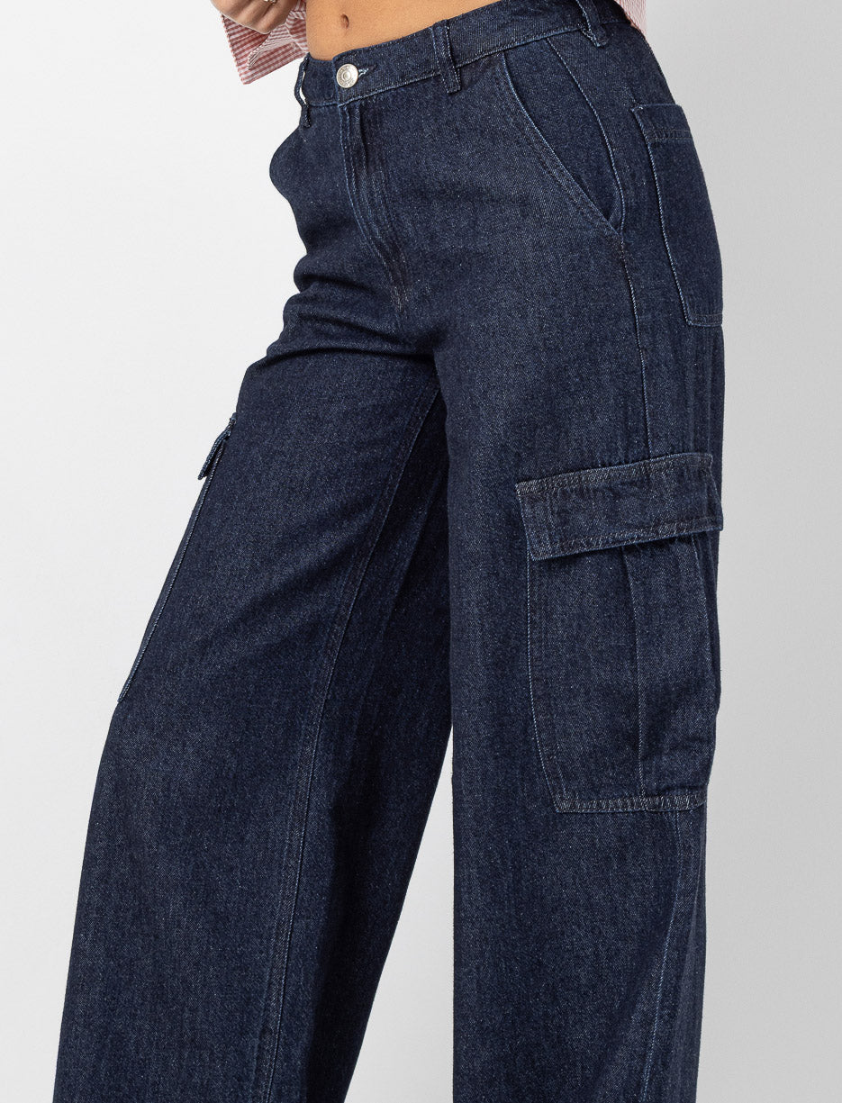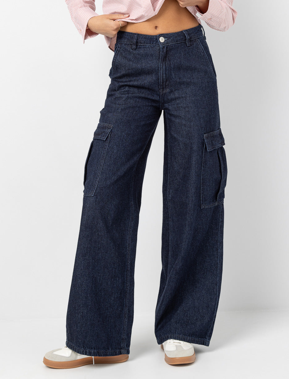 These wide-leg cargo jeans combine comfort and style to deliver a trendy urban look for any outing.
