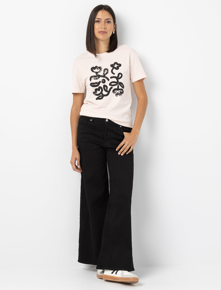 A black essential with endless potential. These wide-leg jeans make a bold statement while elongating your figure and adding character to any outfit.