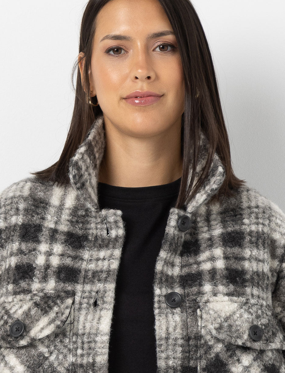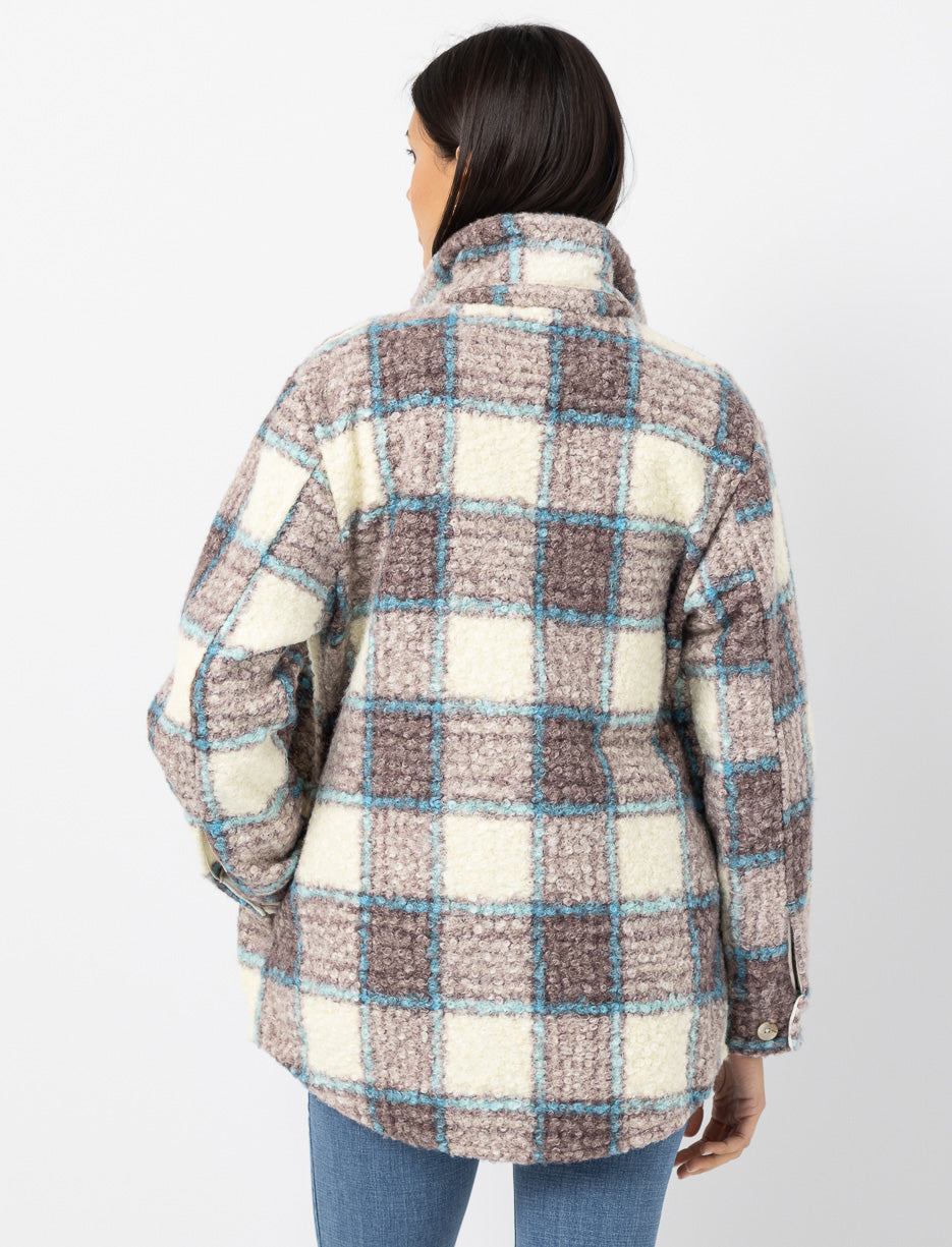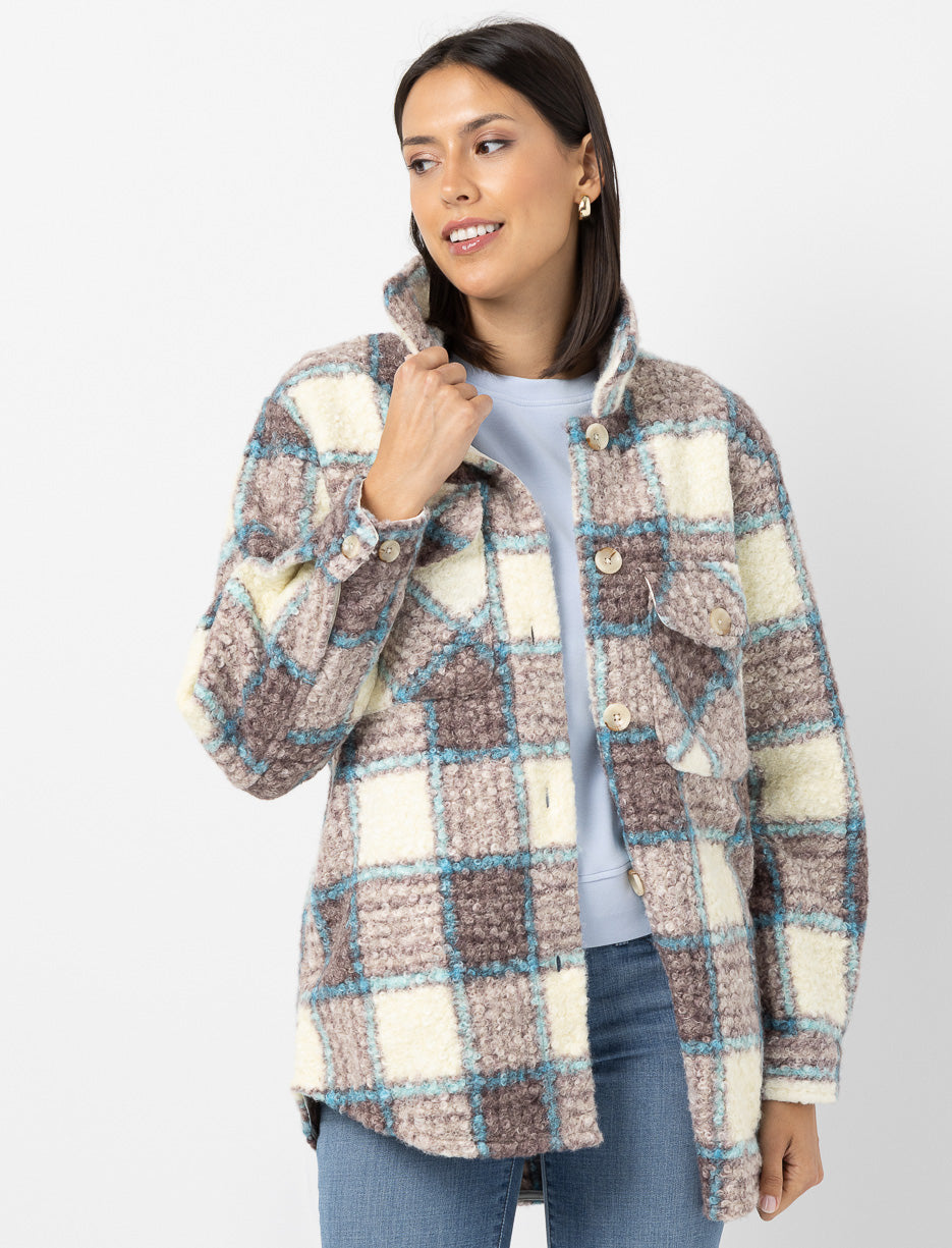 Soft, warm, and on-trend, this plaid shacket is perfect for layering. Its relaxed fit and brushed texture offer a cozy feel with effortless style.