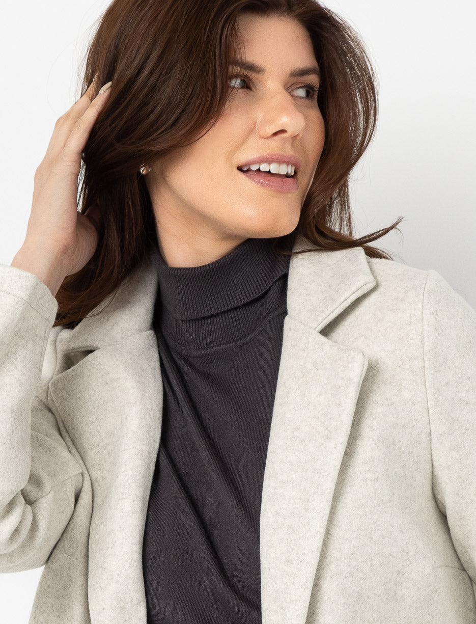A sleek straight-cut coat with a single-button closure, designed to bring a timeless and sophisticated touch to any outfit.