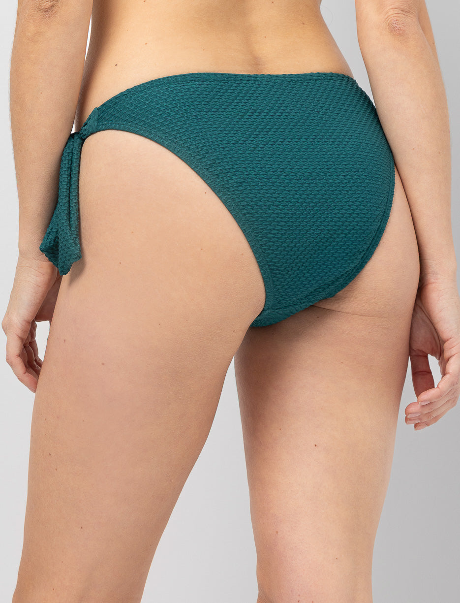A bikini bottom designed for adjustable wear. The high-rise cut and side ties let you customize the fit with ease, making it a comfortable choice for relaxed days by the water.