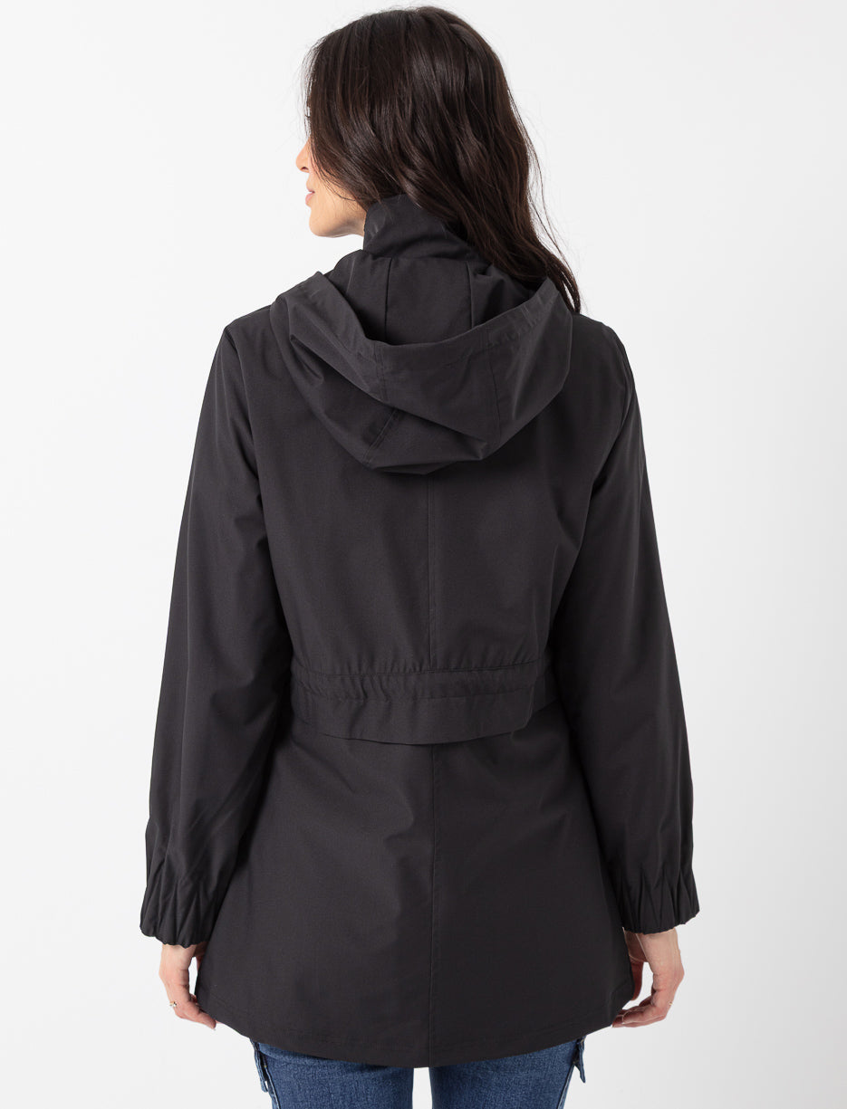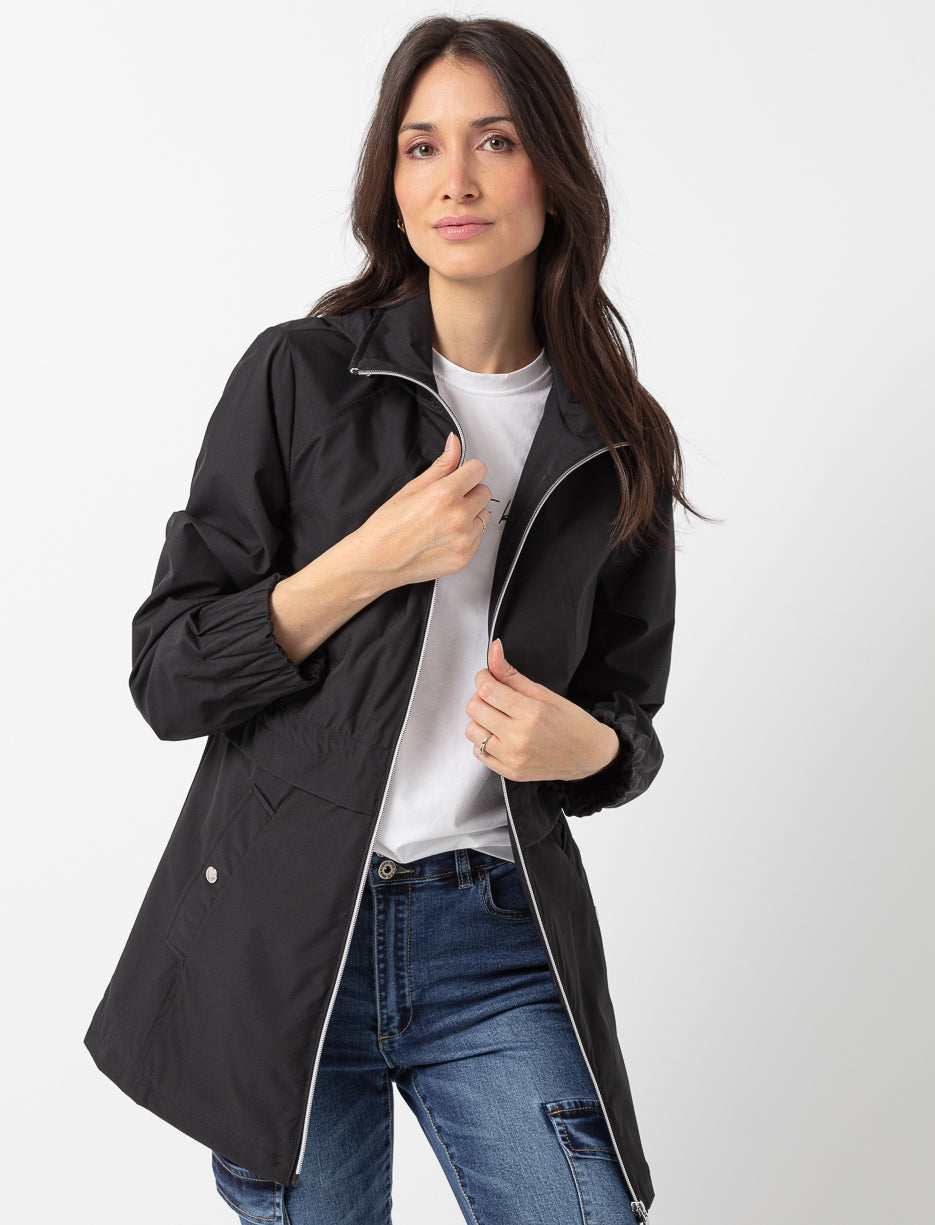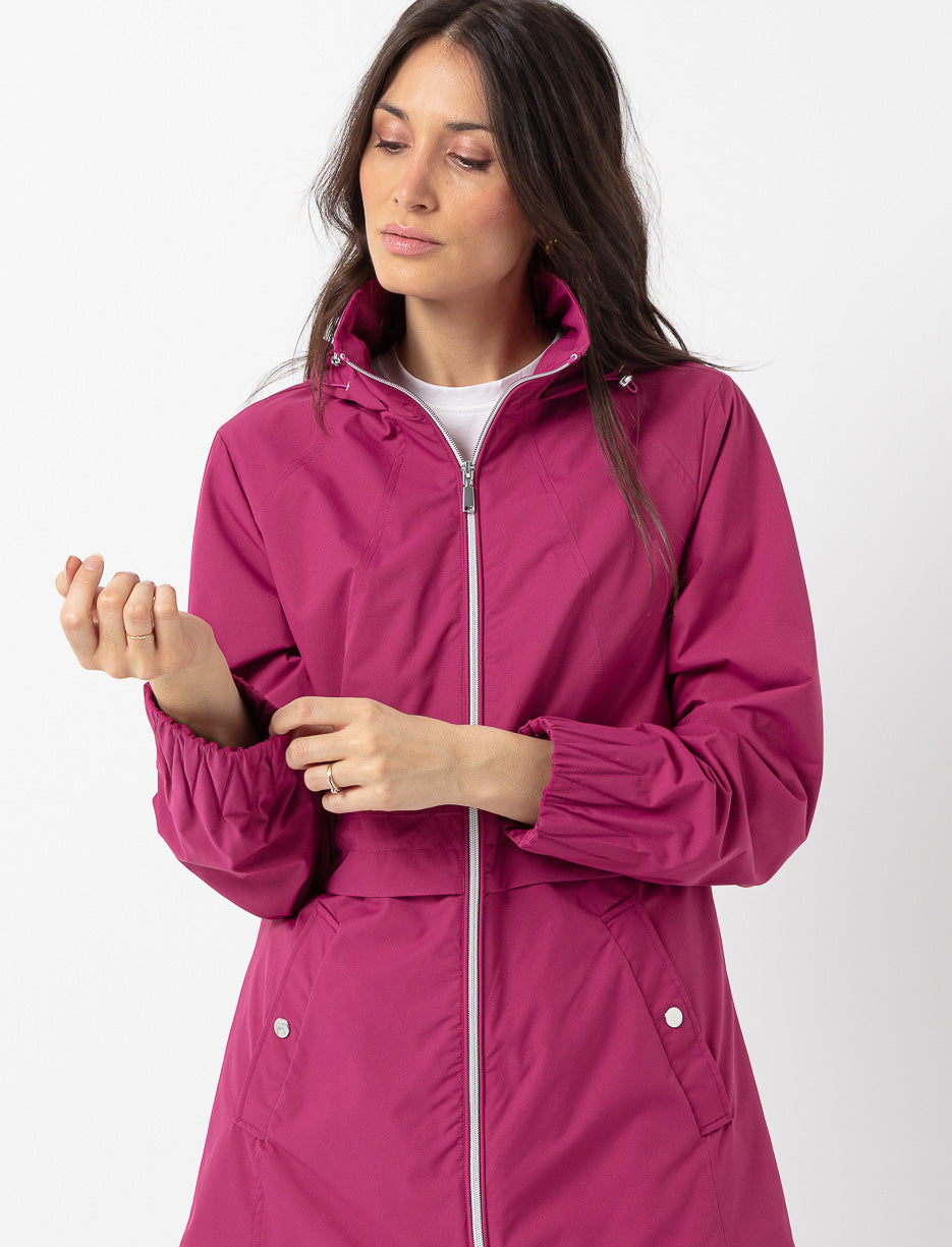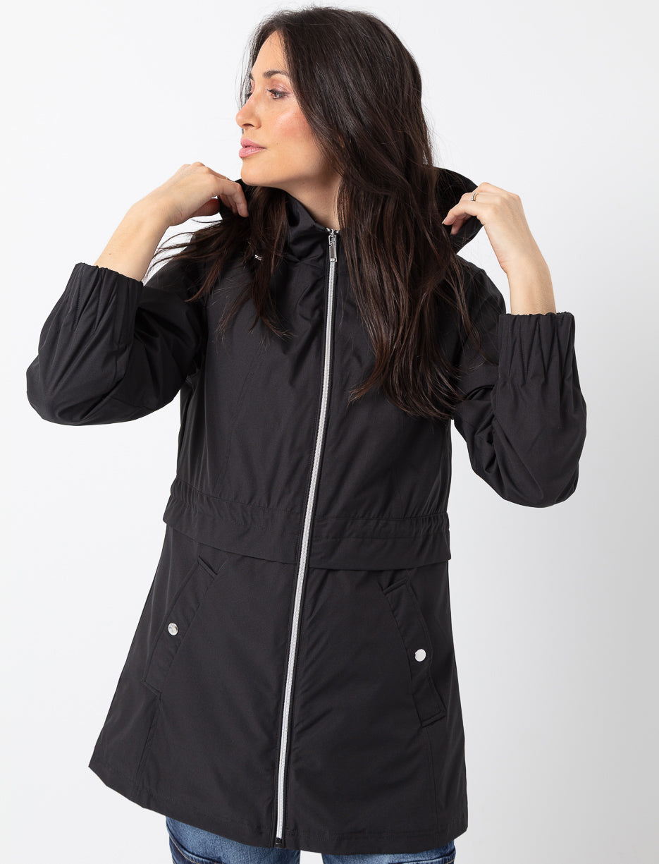 Ready to face any weather in style! This hooded coat combines comfort and practicality with its adjustable waist and handy pockets. Lightweight and flattering, it provides ideal protection against wind and light rain.