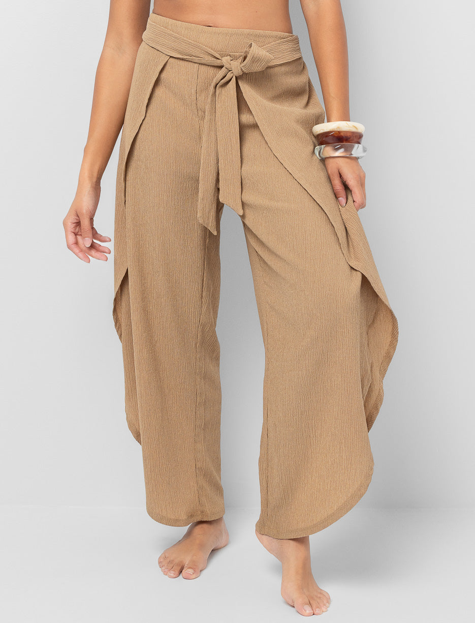 These crinkle-knit beach pants instantly elevate your look by the water. With front slits and a tied waist, they bring effortless flow and style to every sun-drenched moment.