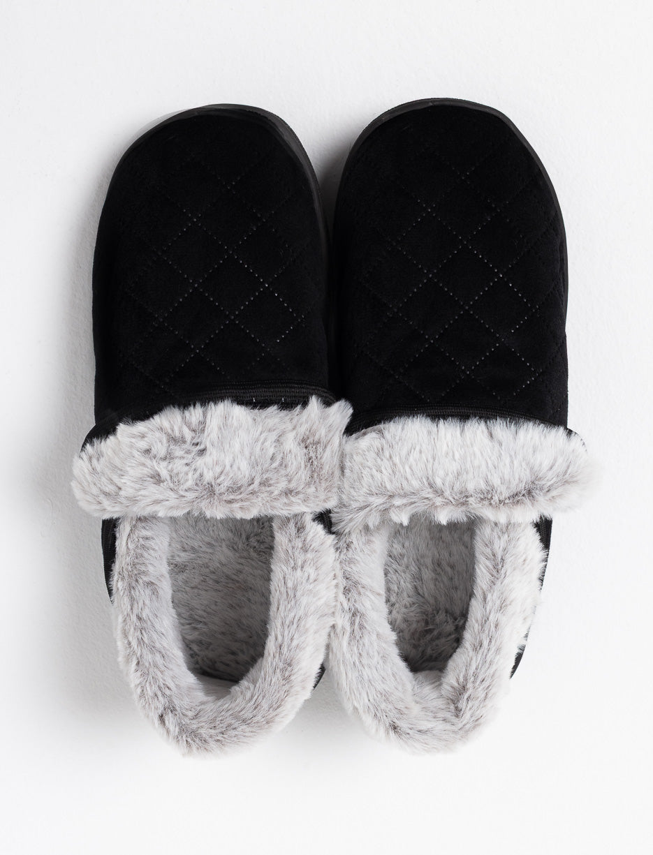 Slip into cozy comfort with these quilted velvet slippers, featuring a soft faux fur lining and a memory foam sole that cushions every step.