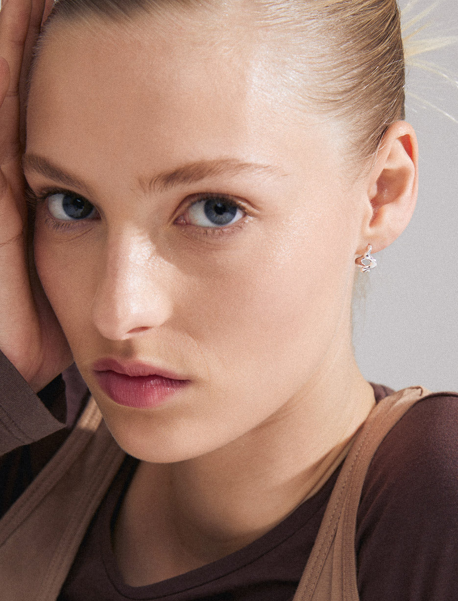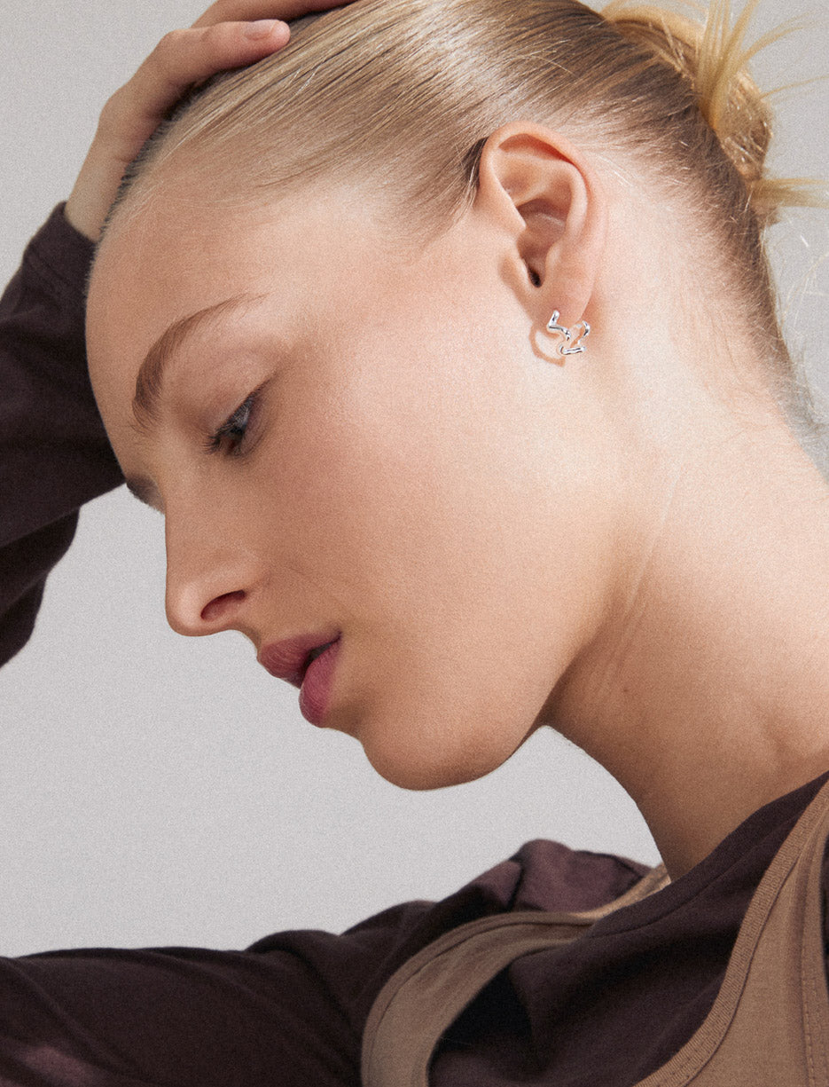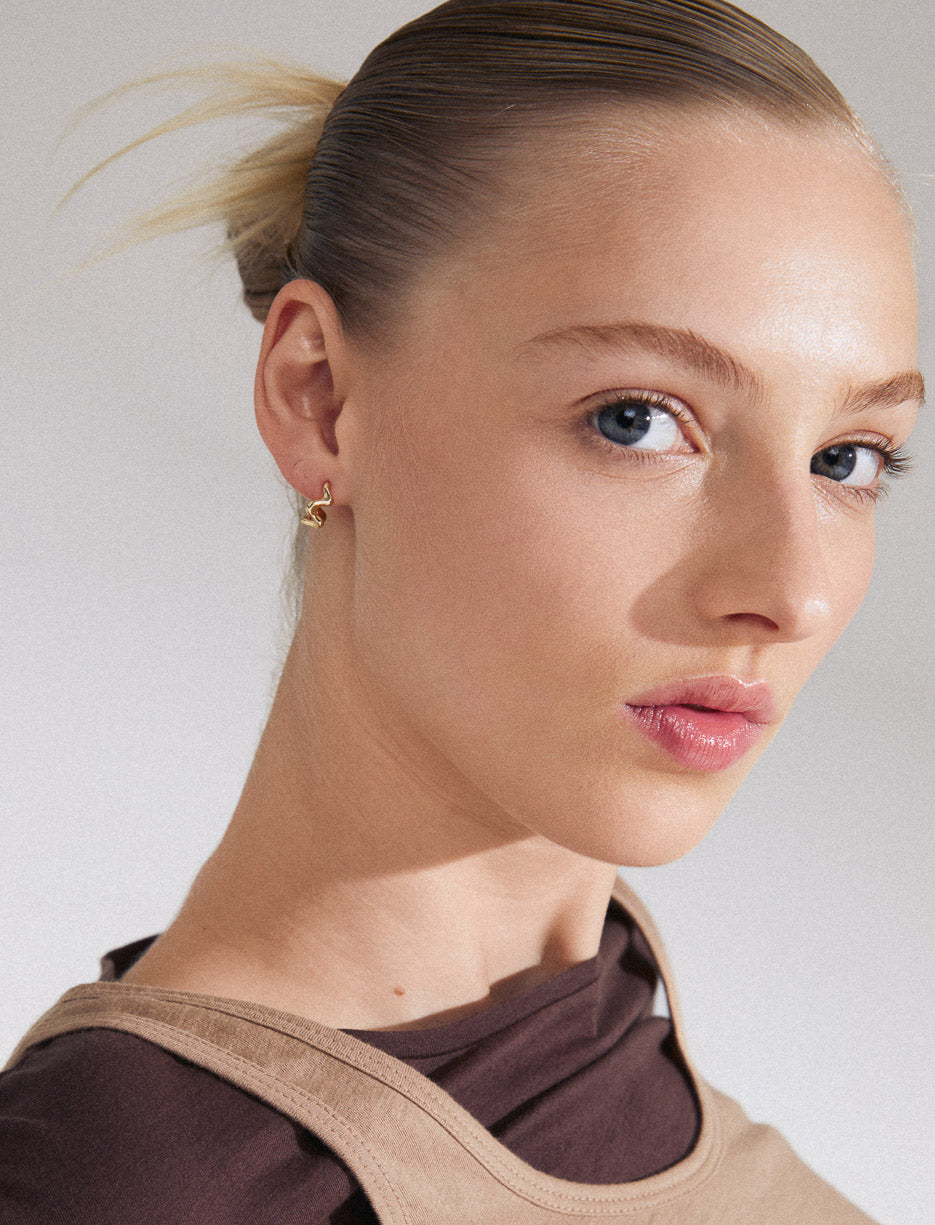 Gold or silver plated earrings with wavy lines and graphic shapes. Elegant and original, they add sophisticated chic to everyday looks. Made with at least 75% recycled materials.