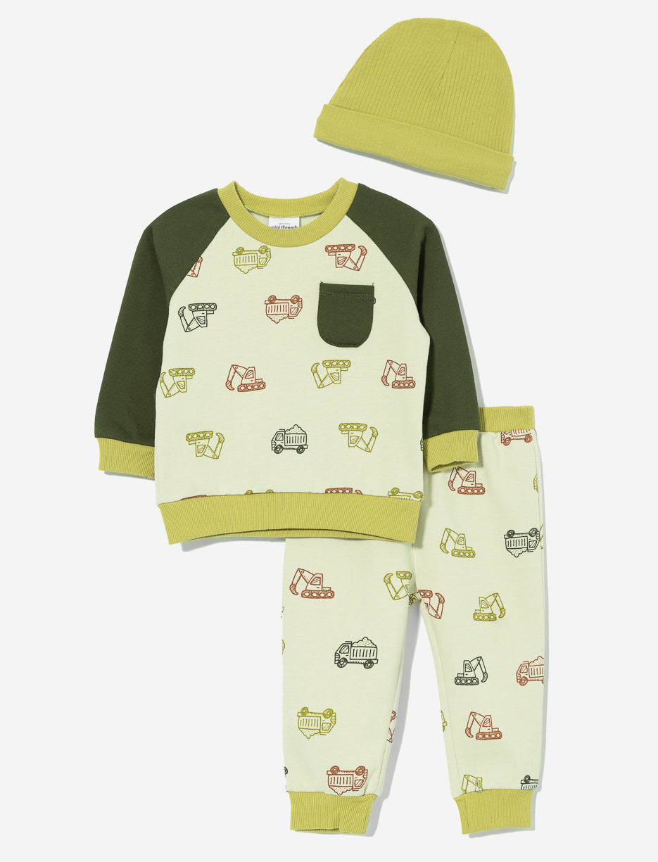 Designed for comfort, this fleece set with long-sleeve sweatshirt and matching pants keeps your little boy cozy while allowing him to move freely throughout the day.