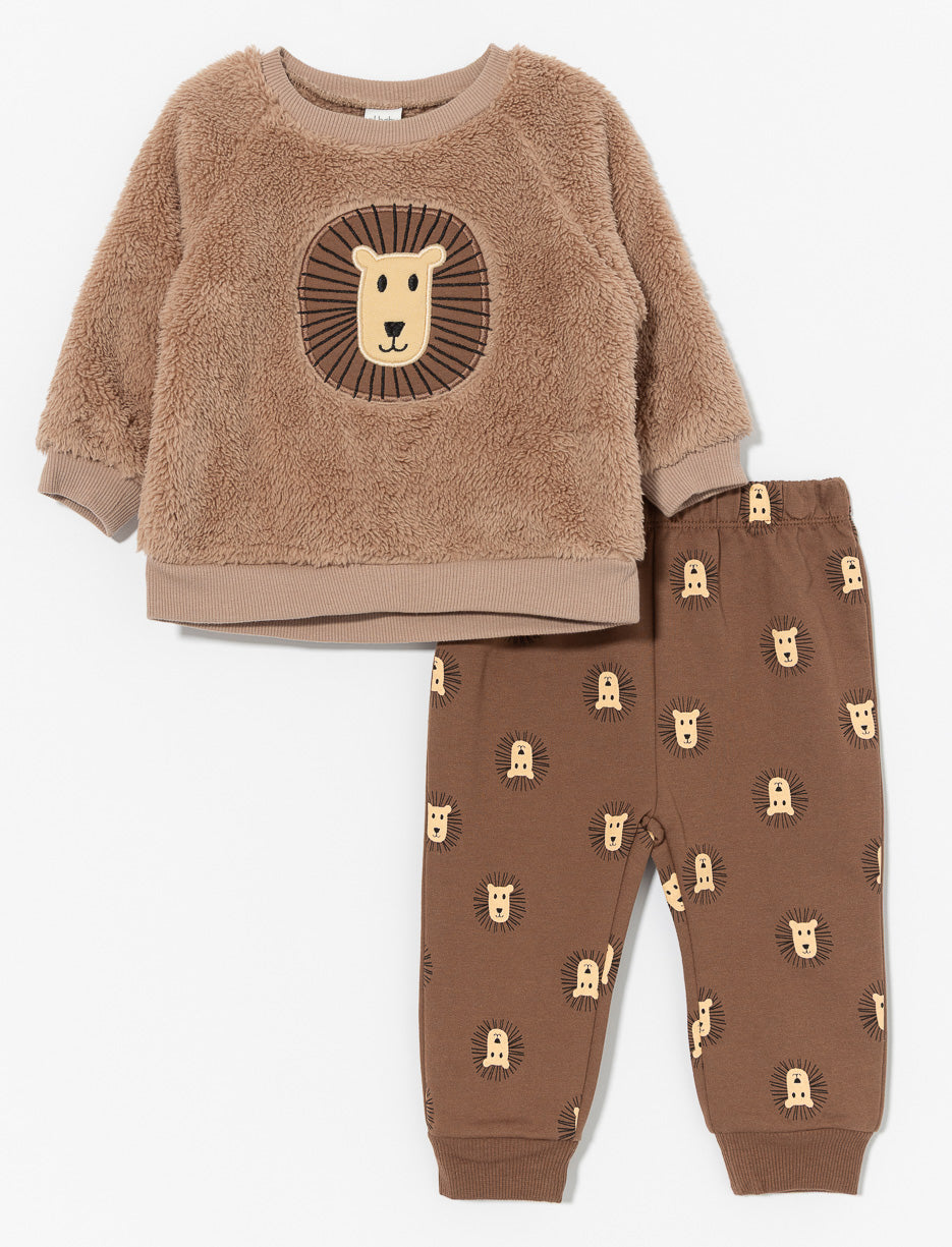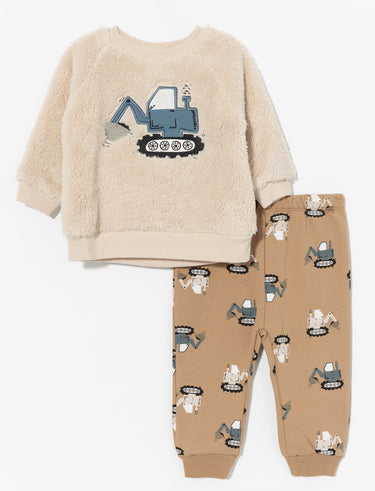 Cozy 2-piece set with a long-sleeve plush sweatshirt and printed elastic-waist pants. A perfect choice for your little one’s comfort and style.